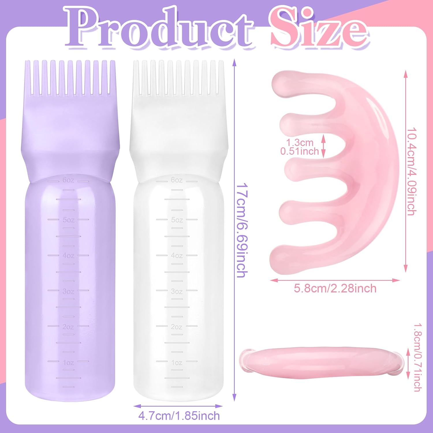 - Quantity: You will receive 2 hair oil applicator bottles (white and purple) and 1 scalp massage comb (pink), our product combination is very suitable for home and salon use.