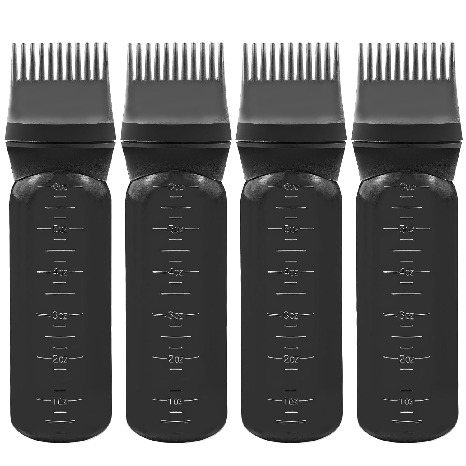 ELANE 4 Pcs Root Comb Applicator Bottle 6oz,Hair Oil Applicator Bottle for Hair,Oil Comb Applicator Hair Bottle Applicator for Hair Dye Shampoos Hair Salons Camping Traveling(Black)