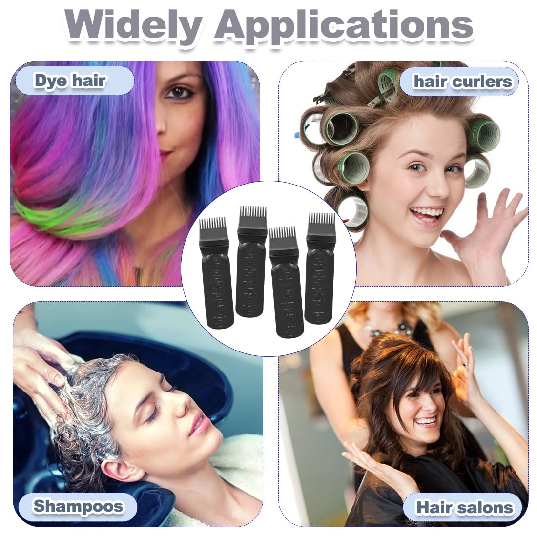 - What you receive-You will receive 4 Pcs oil applicator for hair. Available in a variety of colors,Perfect for you to use in your home,salon,travel,camping