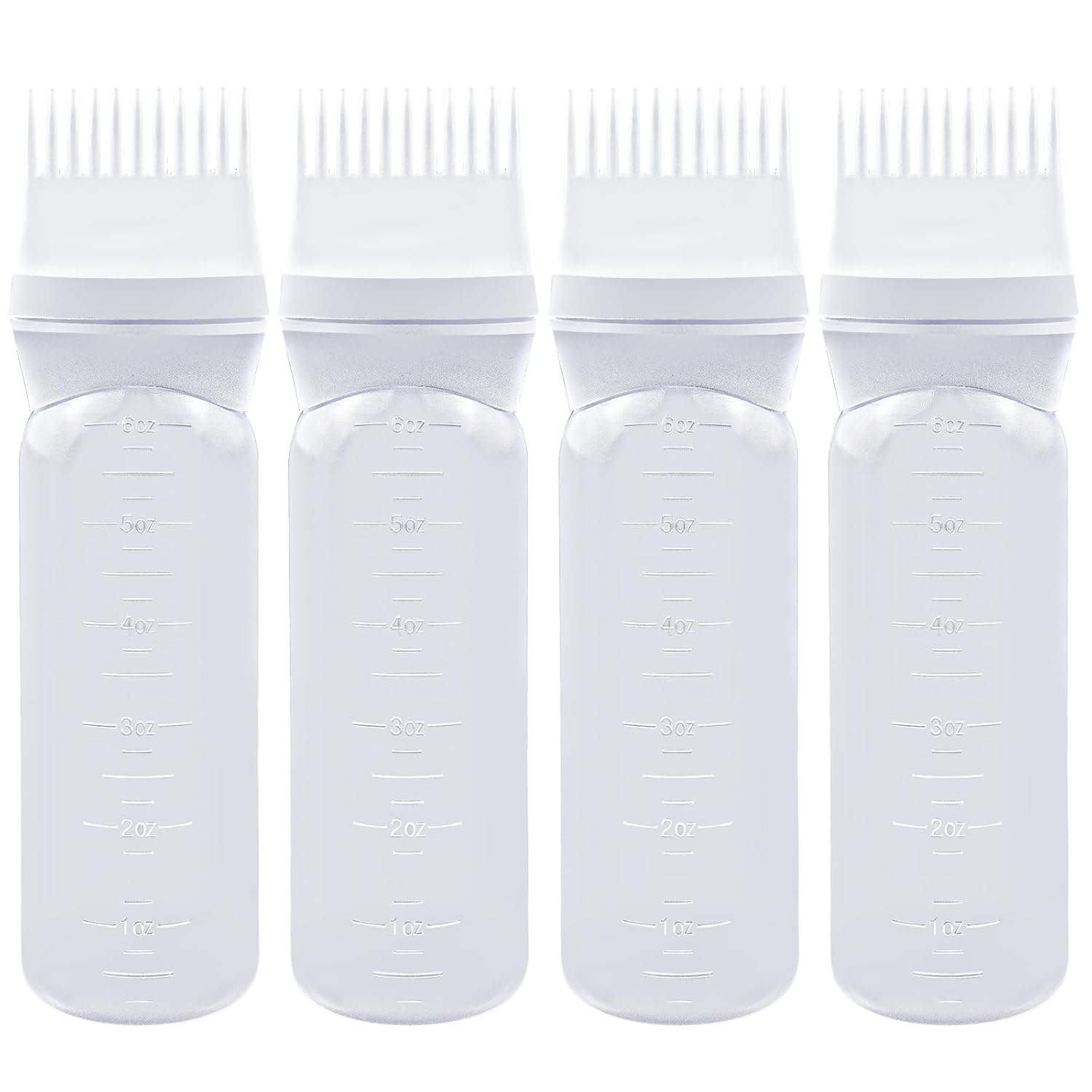 ELANE 4 Pcs Root Comb Applicator Bottle 6oz,Hair Oil Applicator Bottle for Hair,Oil Comb Applicator Hair Bottle Applicator for Hair Dye Shampoos Hair Salons Camping Traveling(White)
