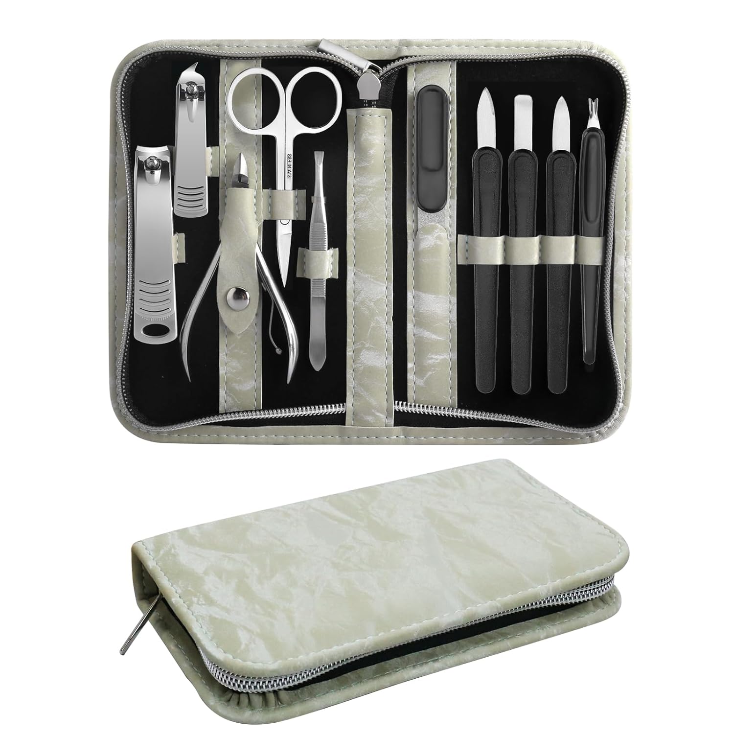 Manicure Pedicure Set, Nail Clipper Set 10-Piece Set Professional Manicure Kit Nail Kit with Portable Travel Case Gift for Men Boyfriend Parent(Light Green)