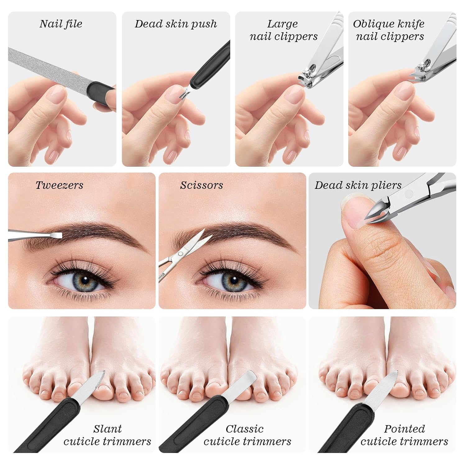 - [Ergonomically Designed] The handle of this manicure set is non-slip and ergonomically designed to fully meet your care needs and bring you a comfortable and pleasant using experience.