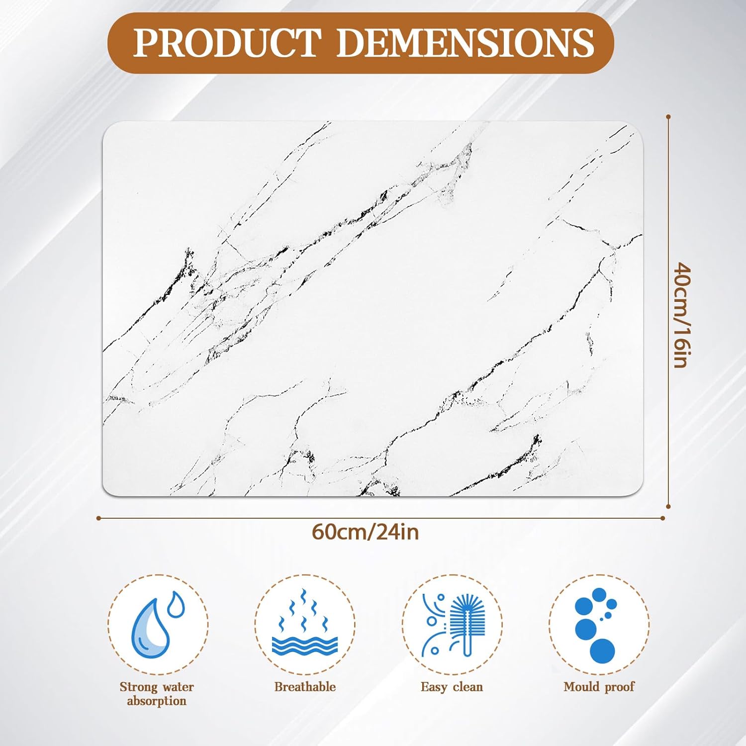 - 【Quick Absorption】HCYDTOPU kitchen drying mat white is designed with advanced absorbent materials that quickly soak up water, keeping your countertops dry and clean. The dish drying mats for kitchen counter are thick enough to better protect countertops, tableware, and glassware from damage. White marble pattern are perfect for kitchen counters and bathroom countertops.