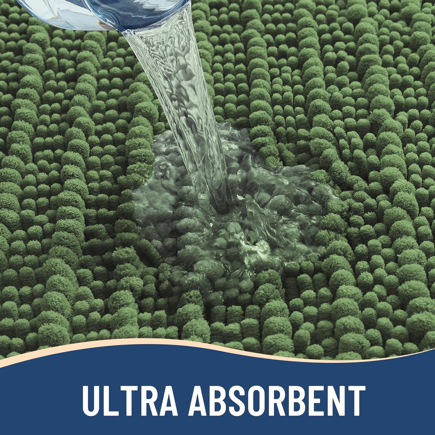 Arotive Luxury Chenille Bathroom Rug Mat, Extra Soft Thick Absorbent Shaggy Bath Rugs, Non-Slip Machine Wash Dry, Plush Bath Mats for Bathroom, Shower and Tub, 36x24, Olive Green