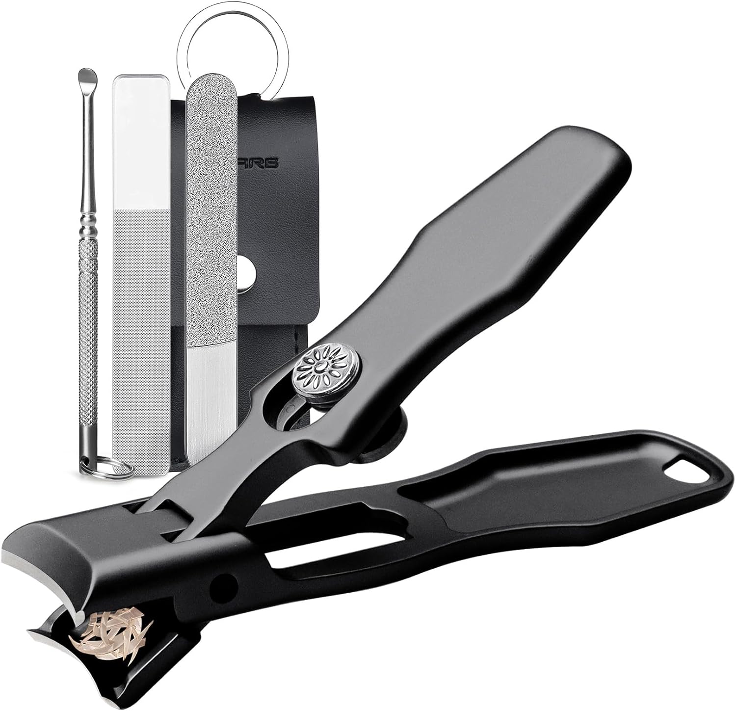 Nail Clippers for Men & Seniors Thick Toenails and Fingernail - Wide Jaw Opening Portable Ultra Sharp Finger Nail Clippers with Catcher, Heavy Duty Stainless Steel, Black Set