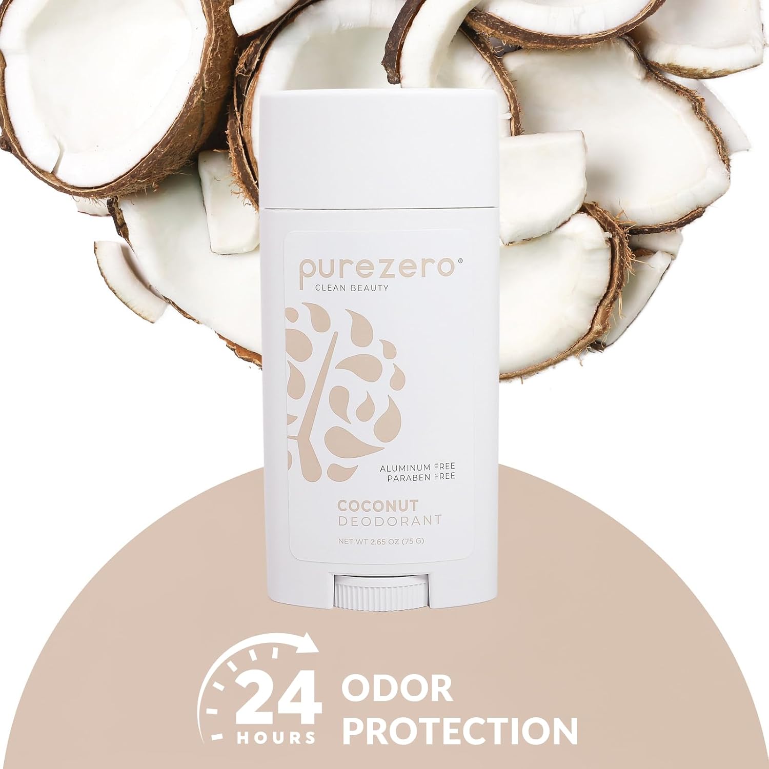 Purezero Deodorant | COCONUT | Aluminum & Paraben Free with Baking Soda and 24-Hour Odor Protection | For Women & Men | Infused with Shea Butter & Coconut Oil (1 Pack)