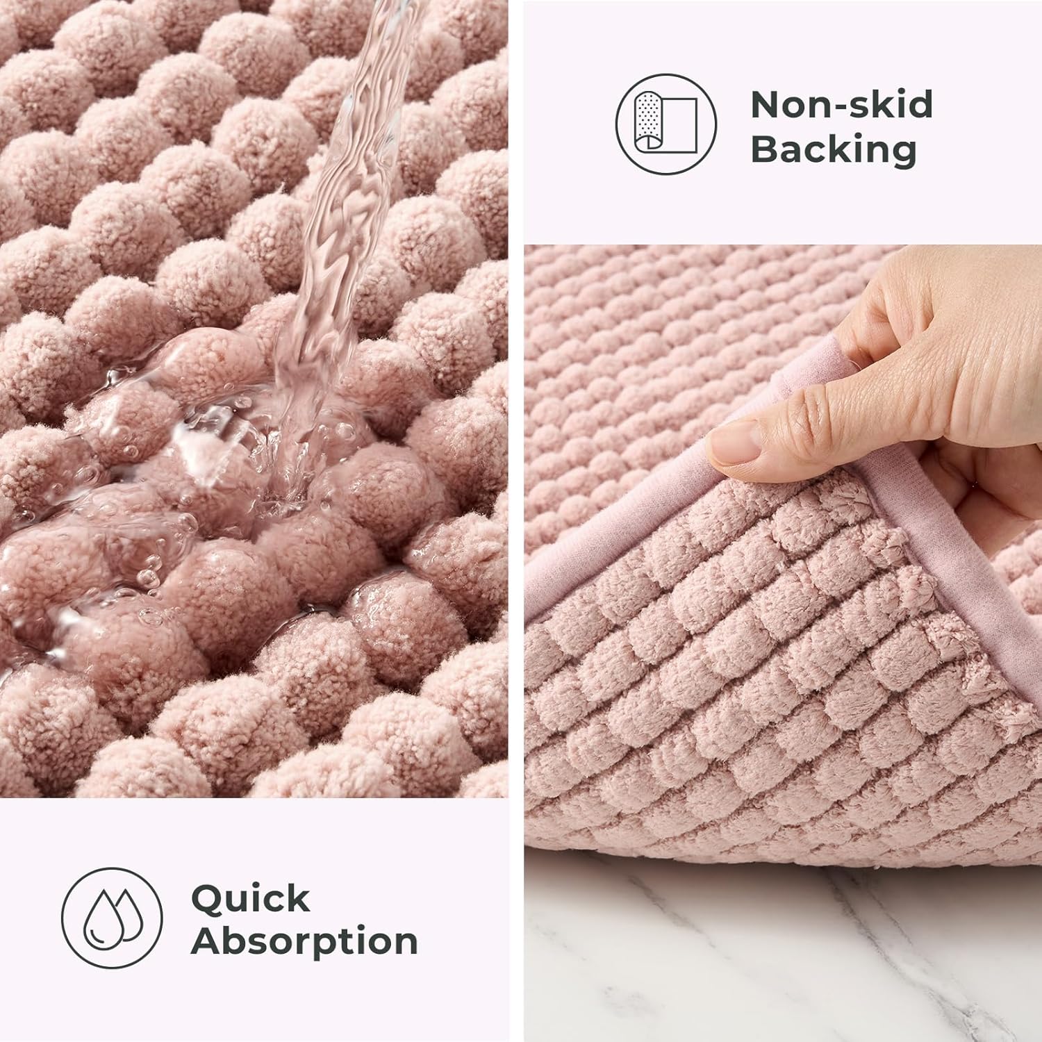 FRESHMINT Thick Chunky Chenille Bathroom Rugs 17"x24", Non Slip Bath Mat for Bathroom Floor, Large Soft Bathroom Decor Accessories, Cute Shower Mat Water Absorbent, Washable, Dusty Pink
