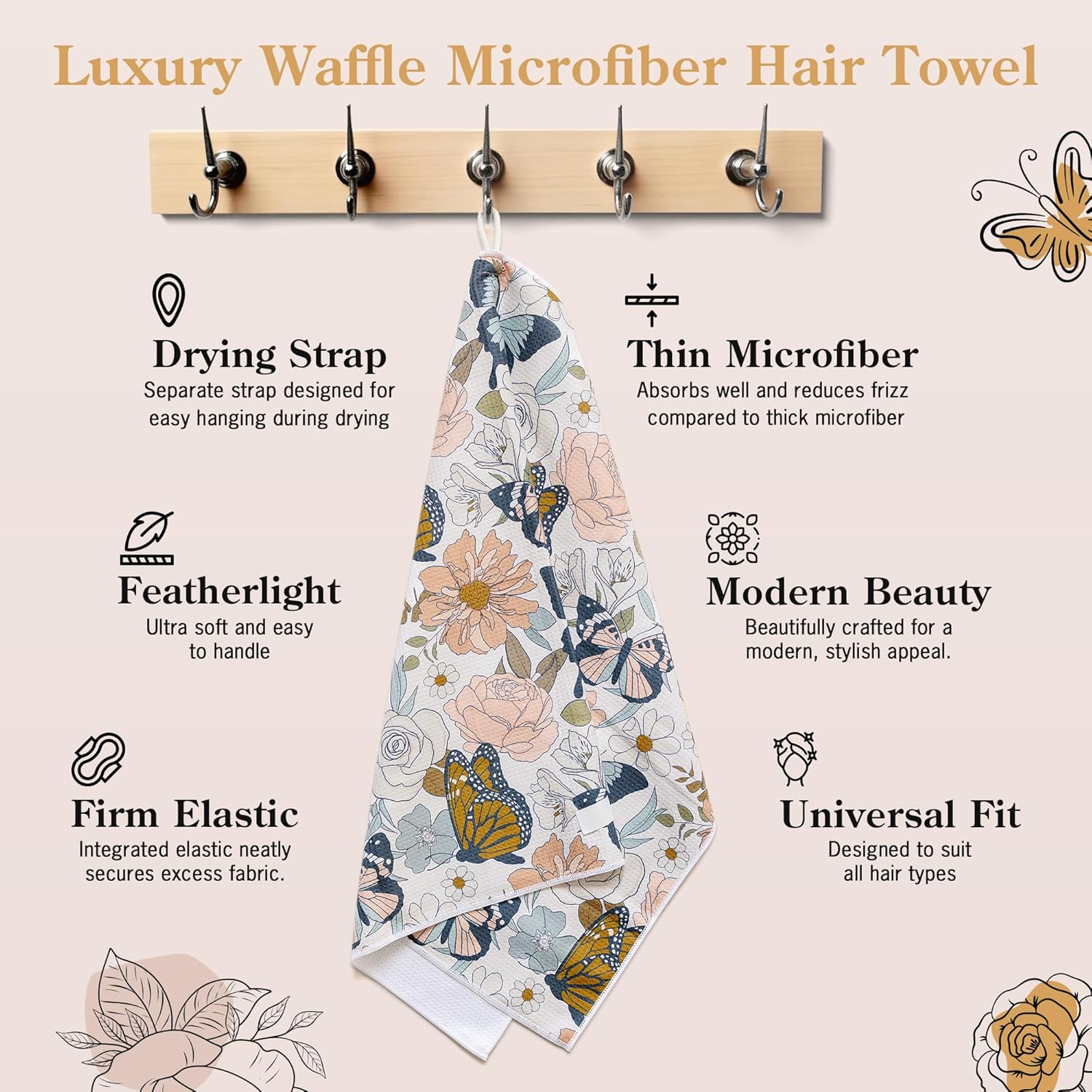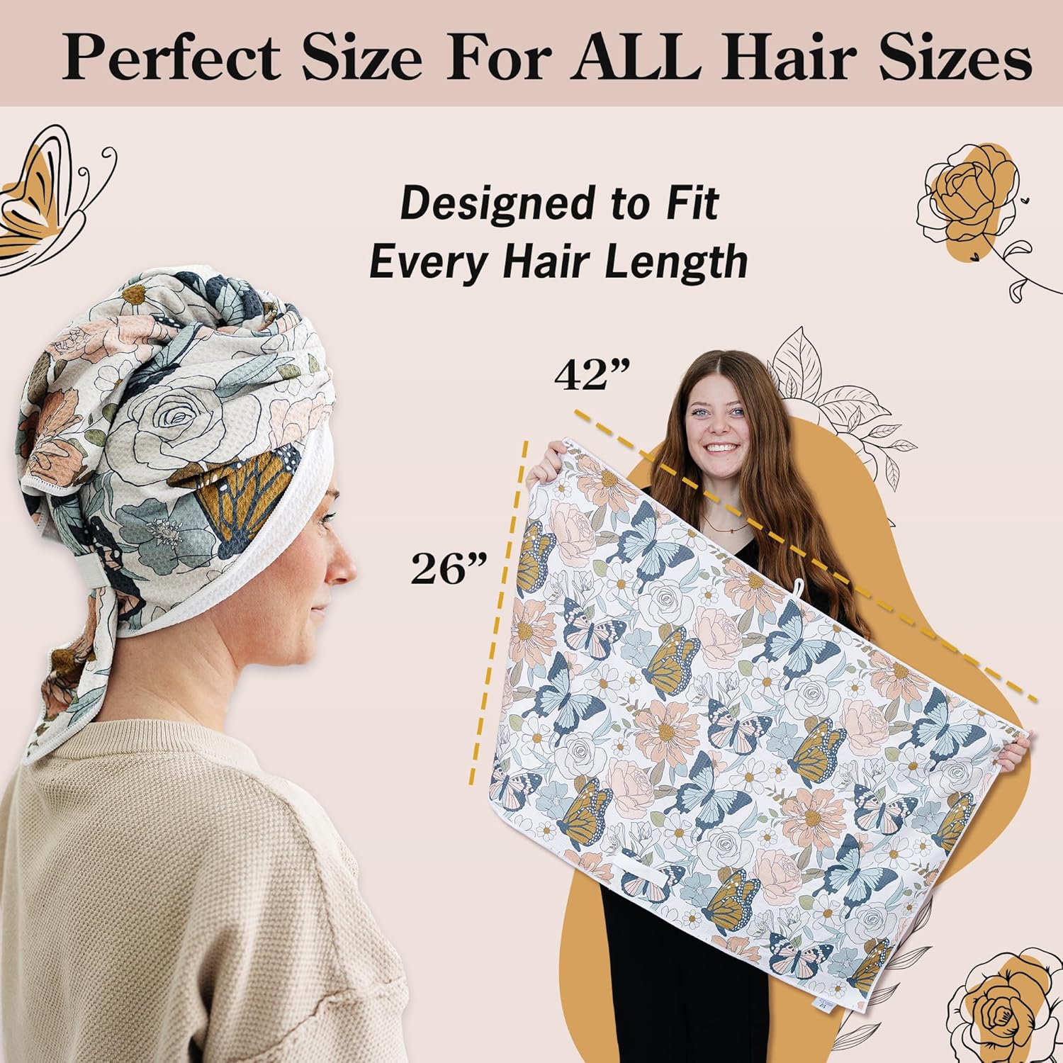 Microfiber Hair Towel Wrap for Women - Anti-Frizz Quick Dry Hair Wrap for Long Hair - Hair Towels for Women, Hair Drying Towel Wrap - Floral Butterfly