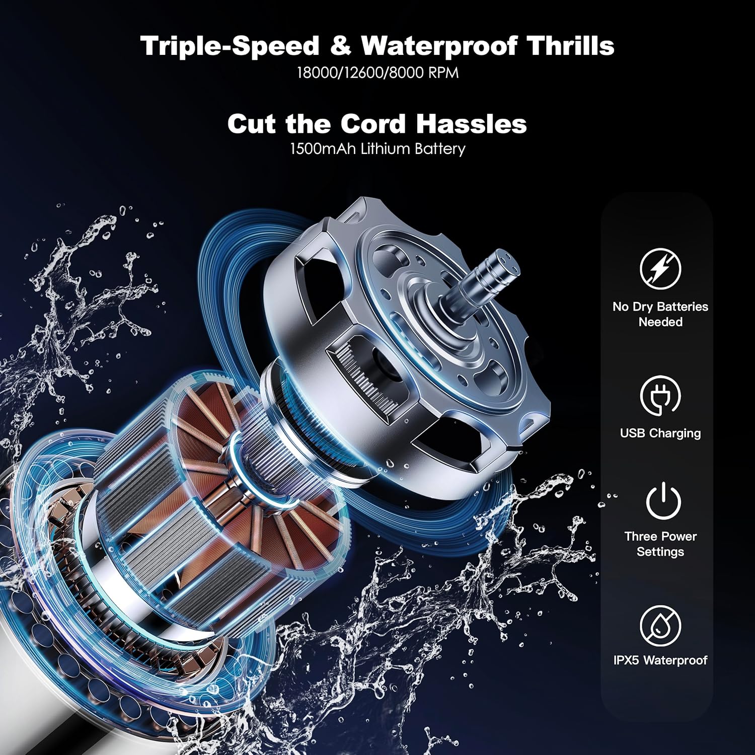 - 【Smart & Cordless】 Features a universal collar for 99% of brushes, three-speed settings, and a rechargeable battery. Compact and travel-friendly for effortless brush care anywhere.