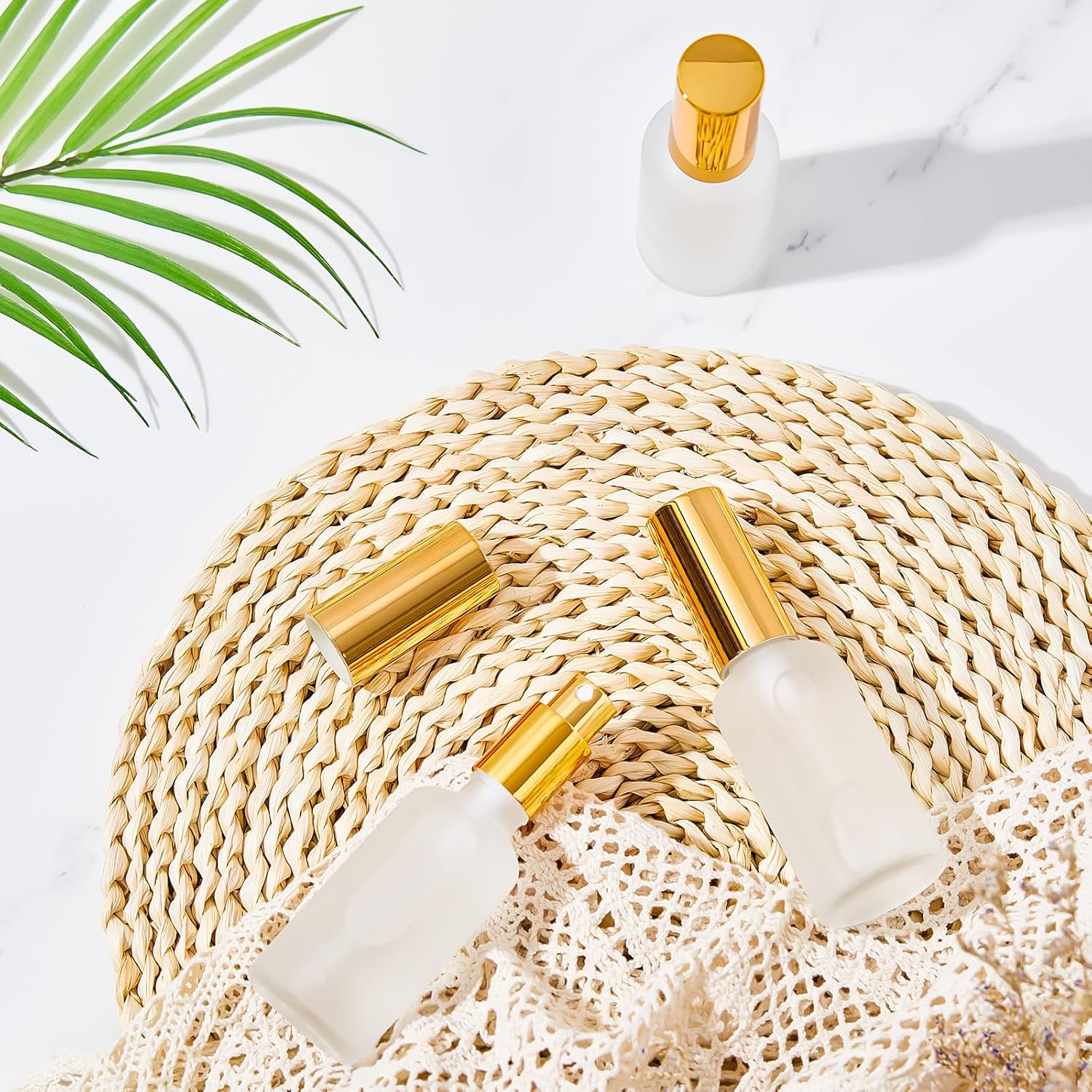 - Elegant Frosted Design: our fine mist spray bottles are designed with frosted glass body and gold cap cover, which is exquisite and elegant, not only a perfume bottle, but also a good ornament on your dressing table, and the frosted design can avoid inner liquid contact with light directly, bringing convenience to your storage