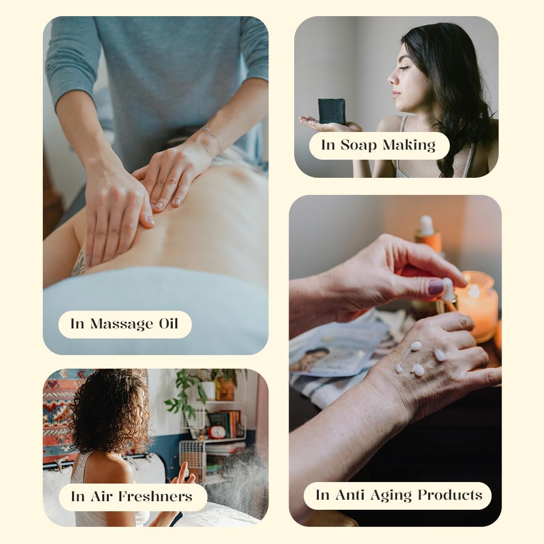 - Engage in the Experience Essential Oil for Home Fragrance diffuser: Add a few millilitres to your essential oil diffuser for home to enjoy the calming and exclusive scent of Vanilla. Skincare Rituals: Blend with your favorite carrier oil like jojoba oil for skin and apply to hydrate and rejuvenate your complexion. Massage Therapy: Incorporate into your massage routine with Rosehip oil or Avocado oil to enhance relaxation and emotional well-being. Can also be blended with Rosemary oil for hair stimulation.