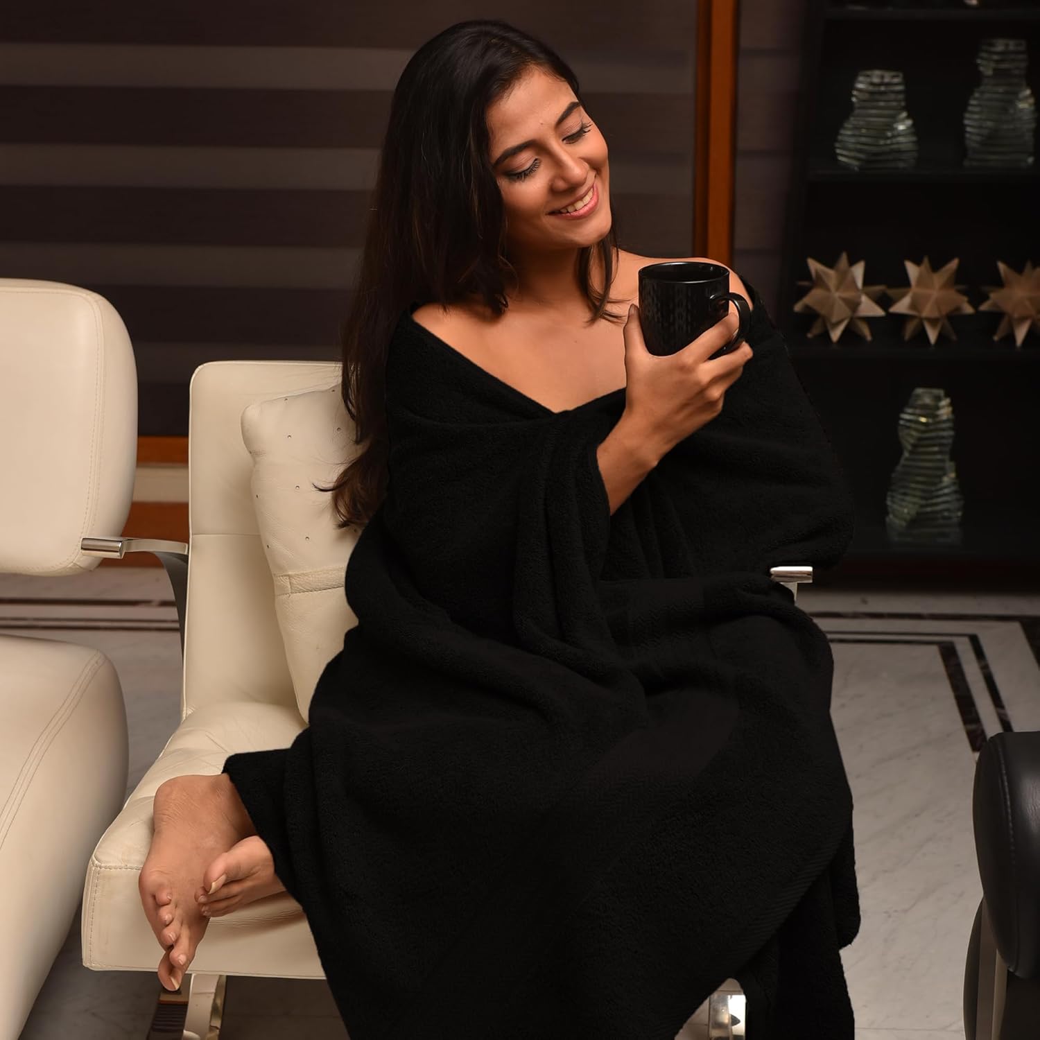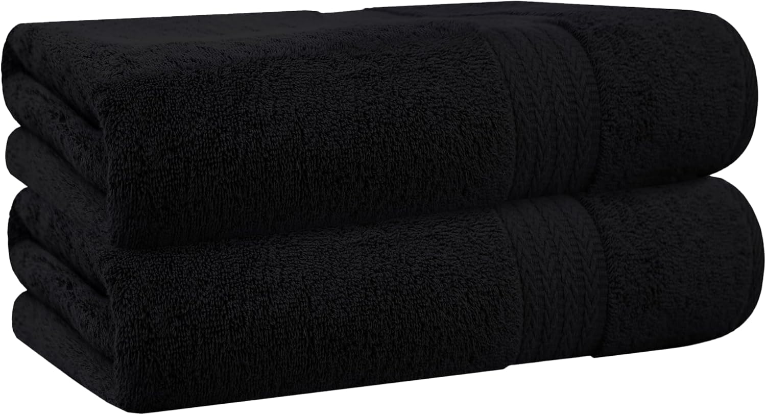 HERCULEAN Oversized Bath Sheet 35 x 75 Pack of 2 | 450 GSM Quick Dry and Highly Absorbent | 100% Cotton Terry Towels for Bathroom - Perfect for Shower - Pool and Spa - Luxury Soft Towels - Black