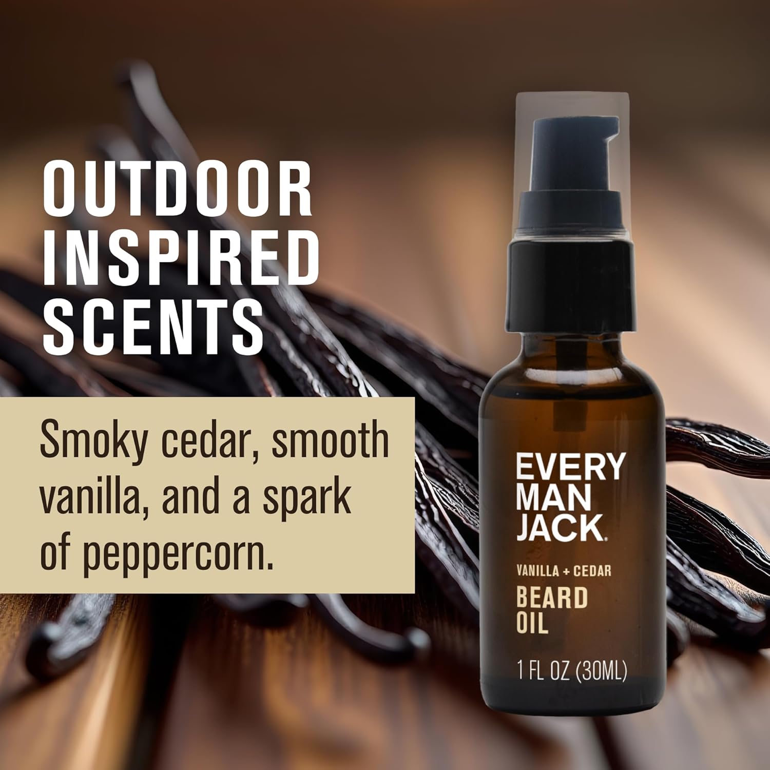 Every Man Jack Mens Beard Oil - Vanilla & Cedar Fragrance - Deeply Moisturizes and Softens Your Beard and Adds a Natural Shine - Naturally Derived with Shea Butter- 1 fl oz (2 Pack)
