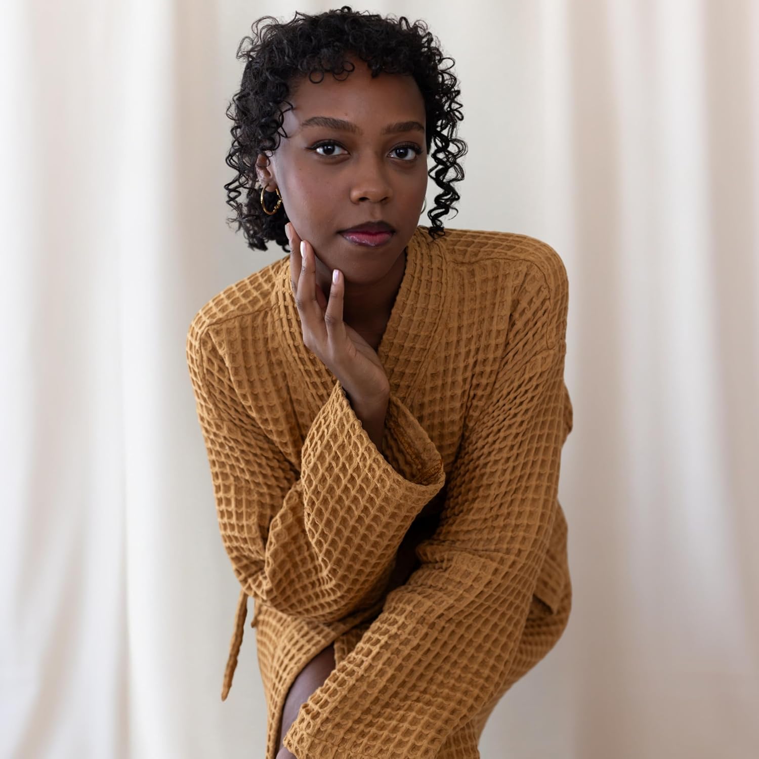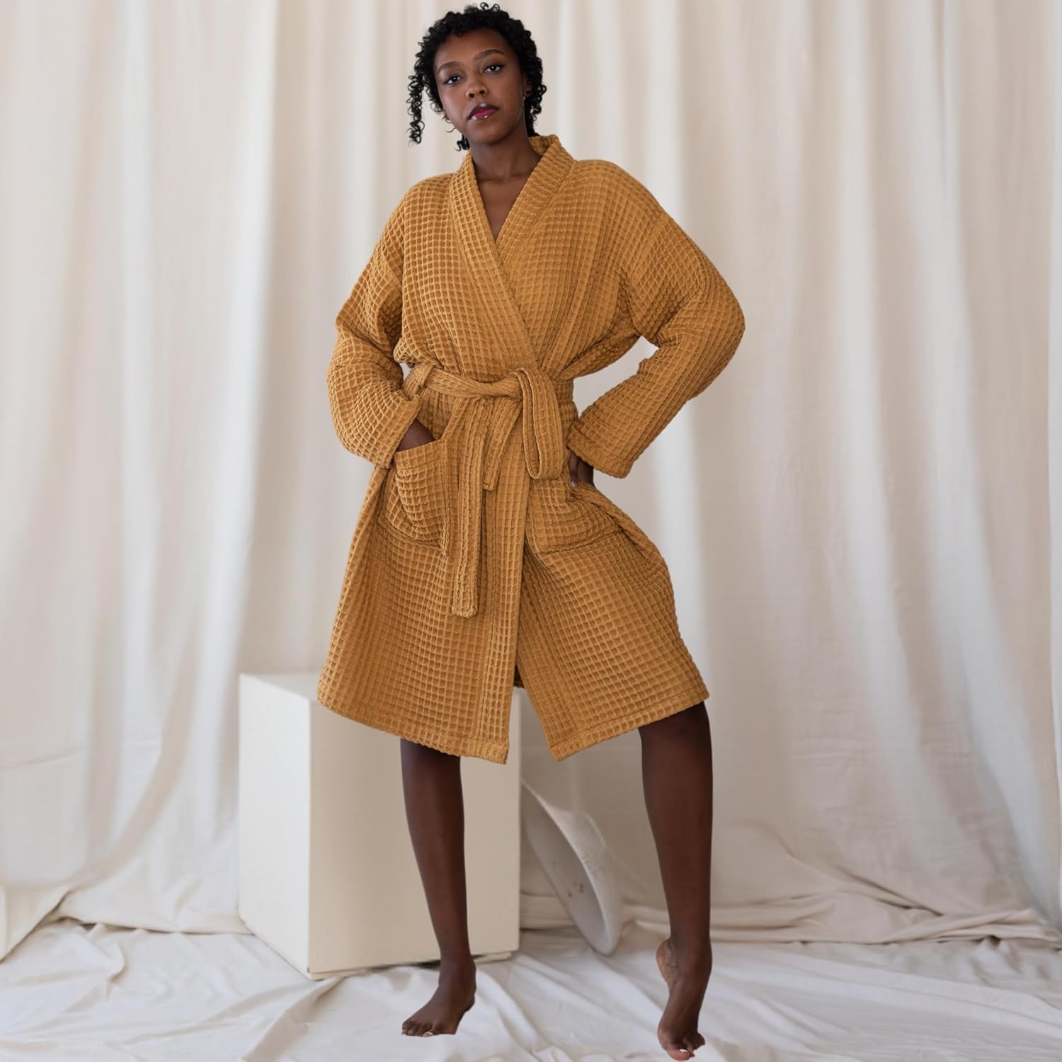 Womens Kimono Waffle Robe - Lightweight 100% Turkish Cotton Housecoat for All-Day Lounging - Bathrobe for Shower