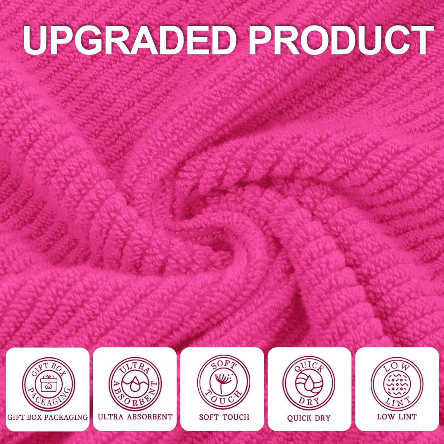 Hot Pink Towels - 100% Cotton, Soft, Quick Dry, Lightweight, Towel Set of 6, 2 Large Bath 30"x56", 2 Thick Hand 18"x28", 2 Absorb Washcloths 13"x13", Pink Bath Towel with Hanging Loop, Luxury Gift Set