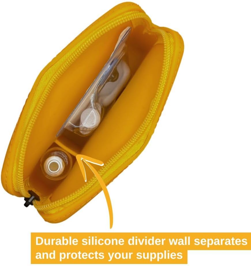 - ๐๐๐ด๐ถ๐ฒ๐ป๐ถ๐ฐ ๐ฆ๐๐ผ๐ฟ๐ฎ๐ด๐ฒ: The non-porous surface of this silicone pouch ensures that your diabetes supplies always stay clean and secure. Itโs easy to wipe down and sanitize, providing you with a hygienic storage solution for your insulin vial and Omnipod pod. Keeping your supplies free from dirt, dust, and moisture is essential to ensure the effectiveness and safety of your insulin. With this pouch, you can trust that your diabetes management tools are stored in a safe, sanitary, and easily maintainable case