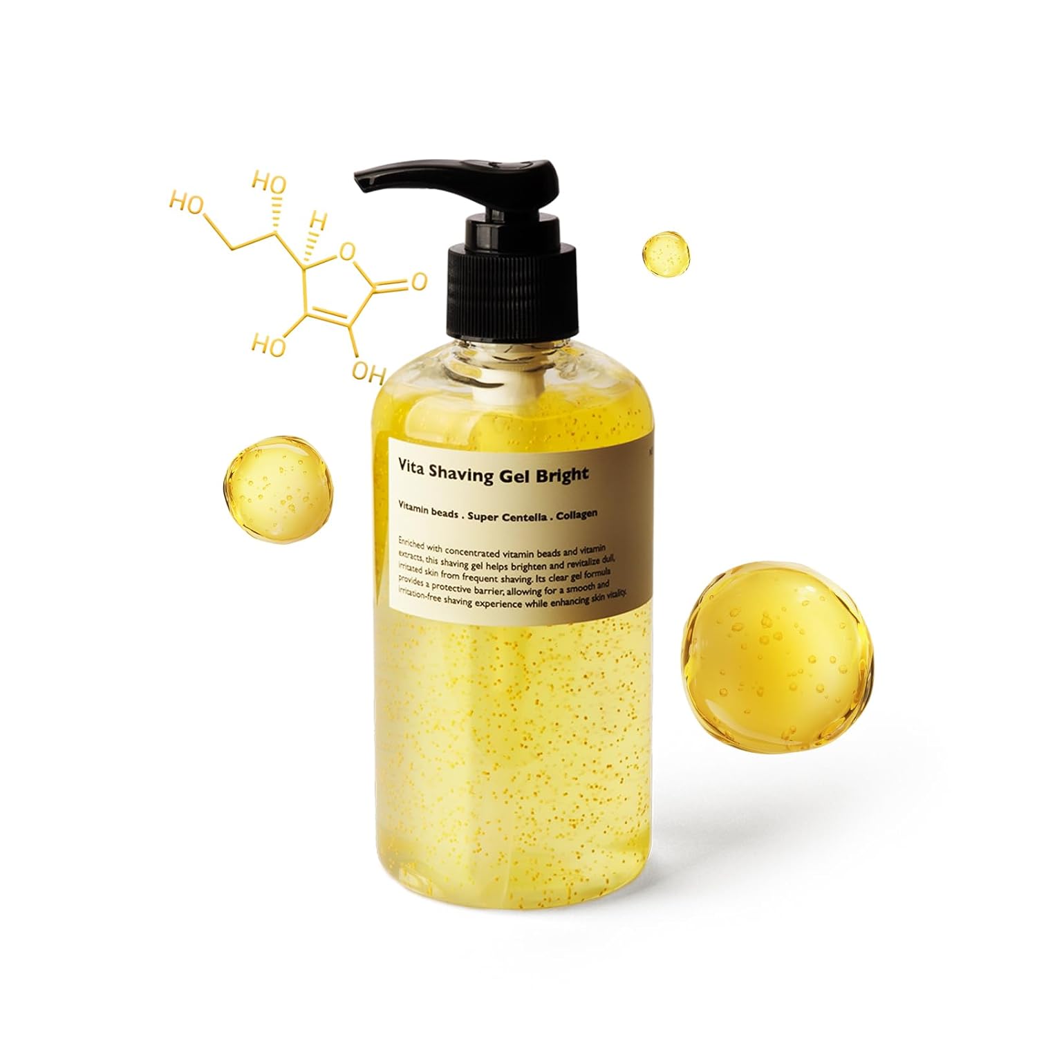 Vita Shaving Gel Bright – Vitamin C Transparent Shaving Gel for Men, Non-Foaming, Smooth Glide & Skin Brightening, 8.45 Fl Oz