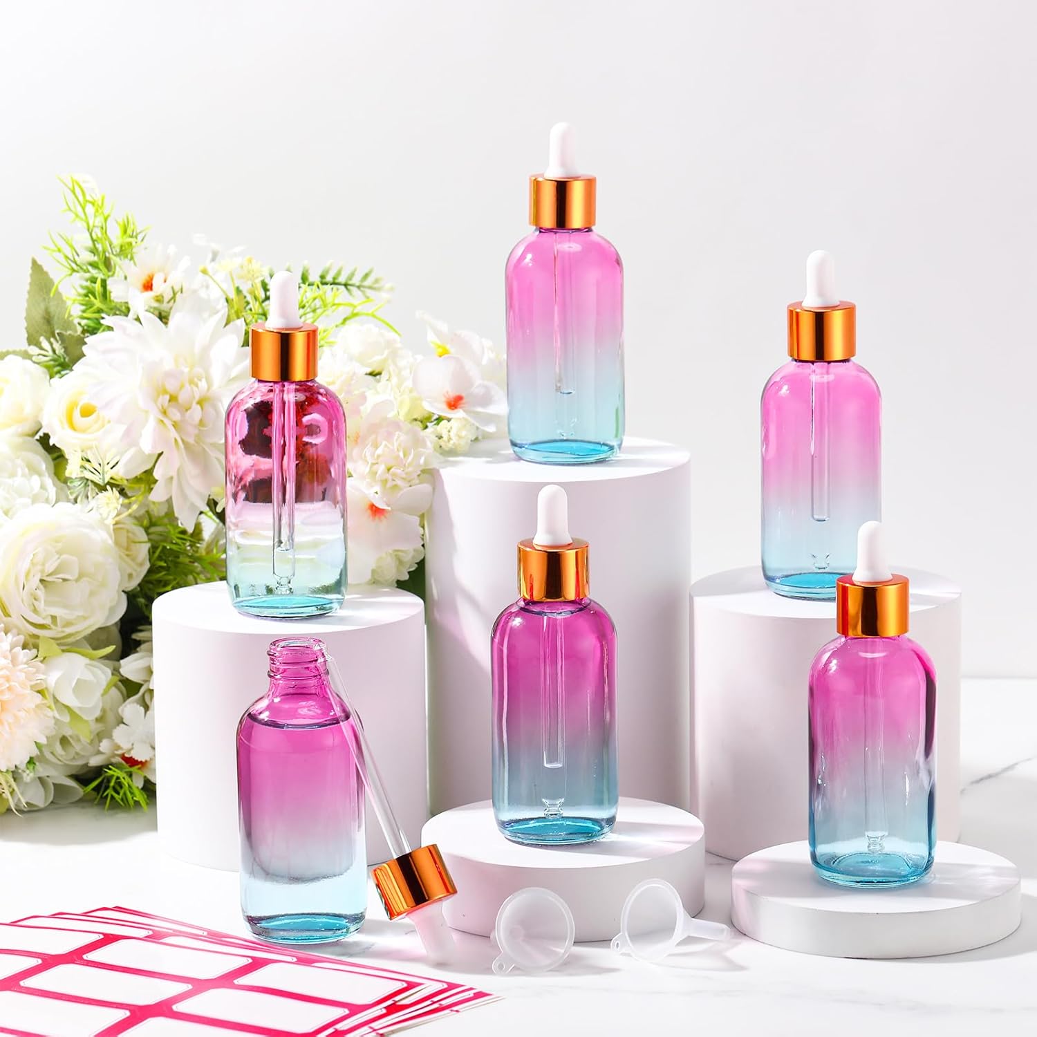 - Less Leakage Worry: the 4 oz glass bottles with lids are designed with nicely tight caps and screw thread bottlenecks, the pink blue gradient glass droppers bottles for essential oils can store the liquid safely, without leaking or spilling when putting in your bag or pocket, providing you a safe and reliable using experience