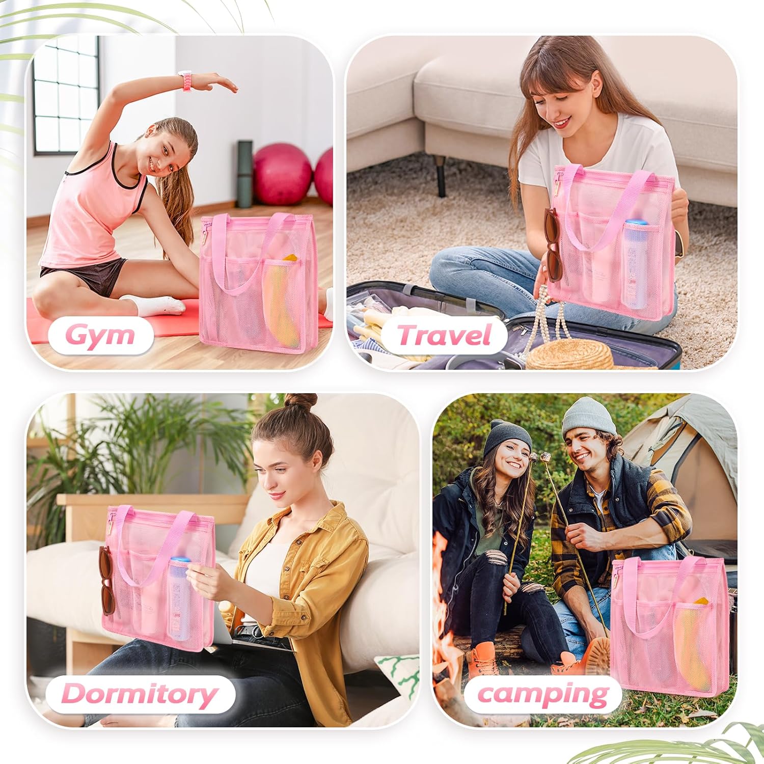 Mesh Shower Caddy Portable, Gym Travel Camp Dorm Room Essentials for Women and College Girl, Pink Bathroom Shower Bag