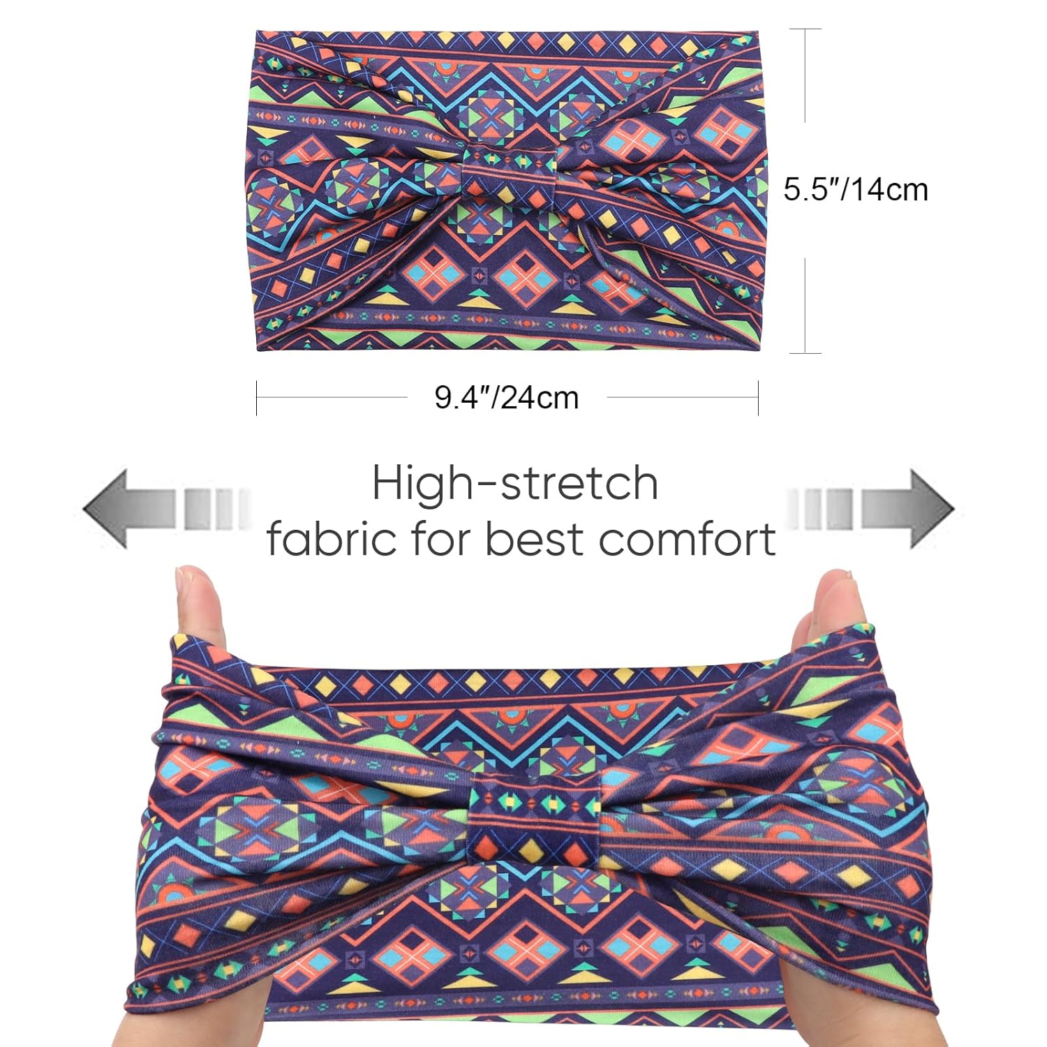 - One Size Fits Most: These boho hair bands have good elasticity so that they can stretch well according to different head circumferences, their sizes of 9.4"/24cm in length and 5.5"/14cm fit for all head sizes.