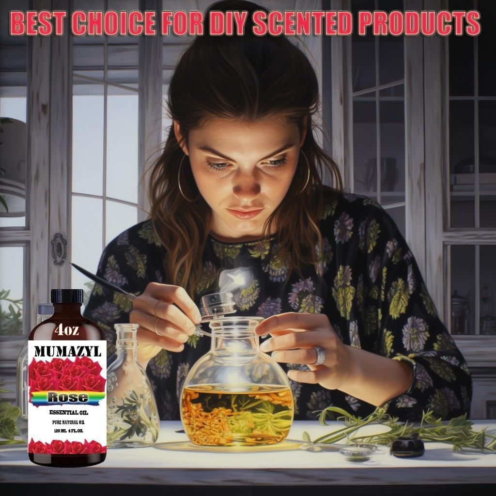 Rose Essential Oil, Rose Oil 4 Fl Oz 120ML for Diffuser Humidifier Yoga Cleaning DIY Candle Soap Making Essential Oils