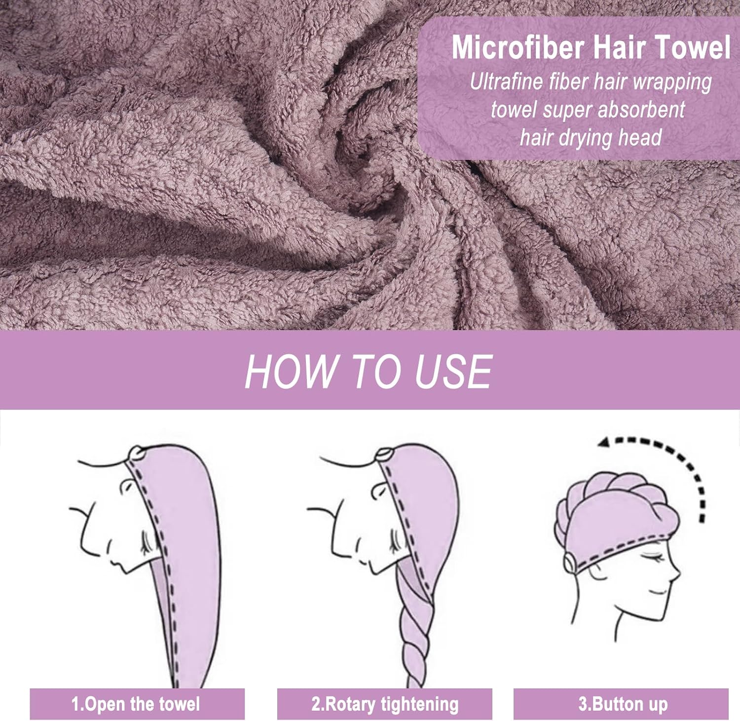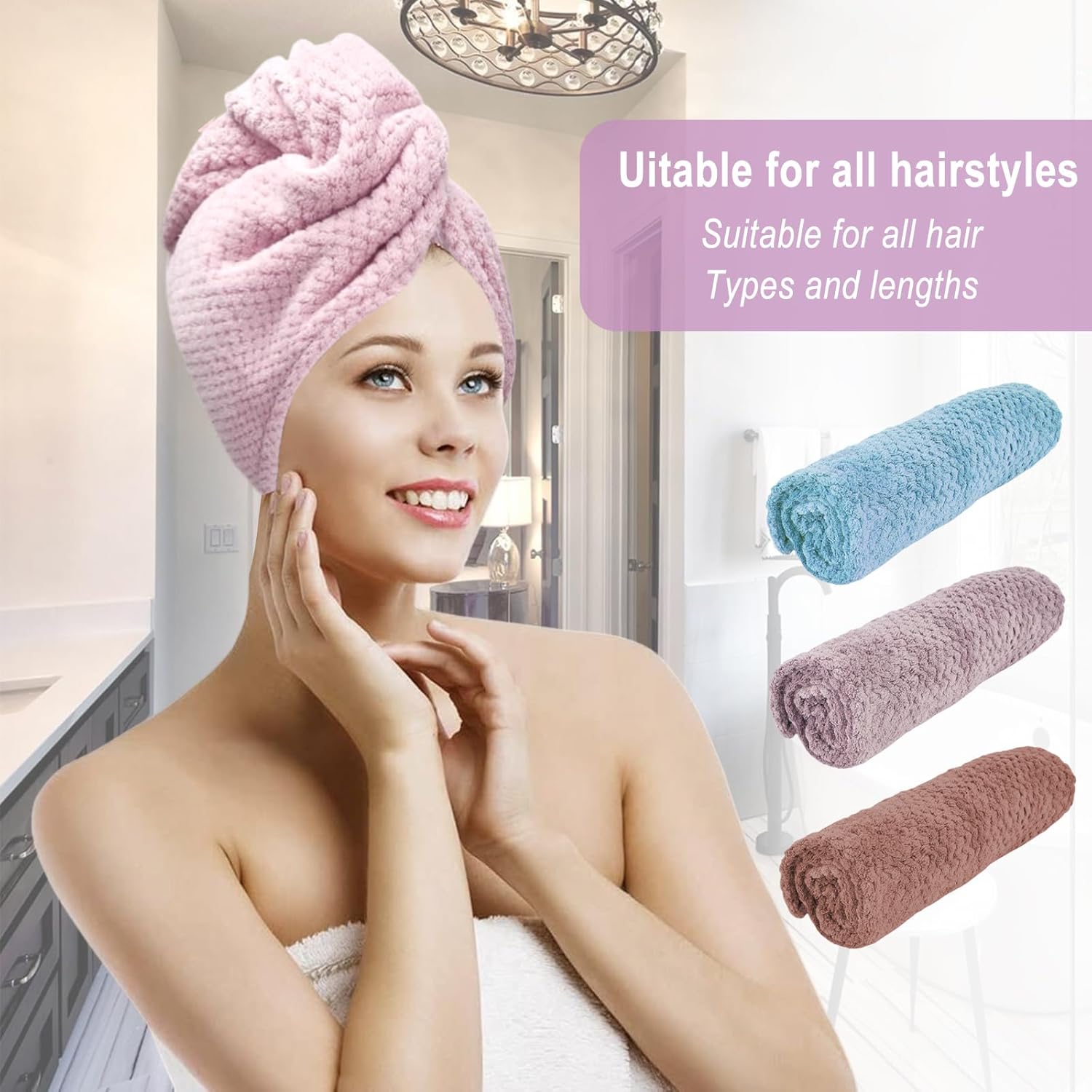 Hair Drying Towel 3 Pack - Ultra Soft Microfiber Turban Twist Hair Wrap for Women - Super Absorbent, Quick Dry Hair Towel Cap for Wet Hair (3 Colors,Purple, Bule, Brown)
