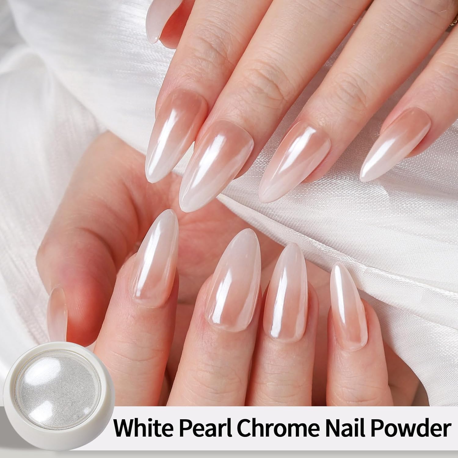 - Elegant Nail Accessories For Nail Design: 3 styles of nail chrome powder: pearl chrome nail powder, metallic mirror effect gold chrome nail powder and laser effect silver chrome powder for nails. They make different effects in different base coat colors. Every jar is equipped with a little brush, which help to apply on nail.Warm tips, it is easier to use by finger. The chrome nail powder are suitable for using as base color to mixing other nail decorations or just single coating in full of nail.