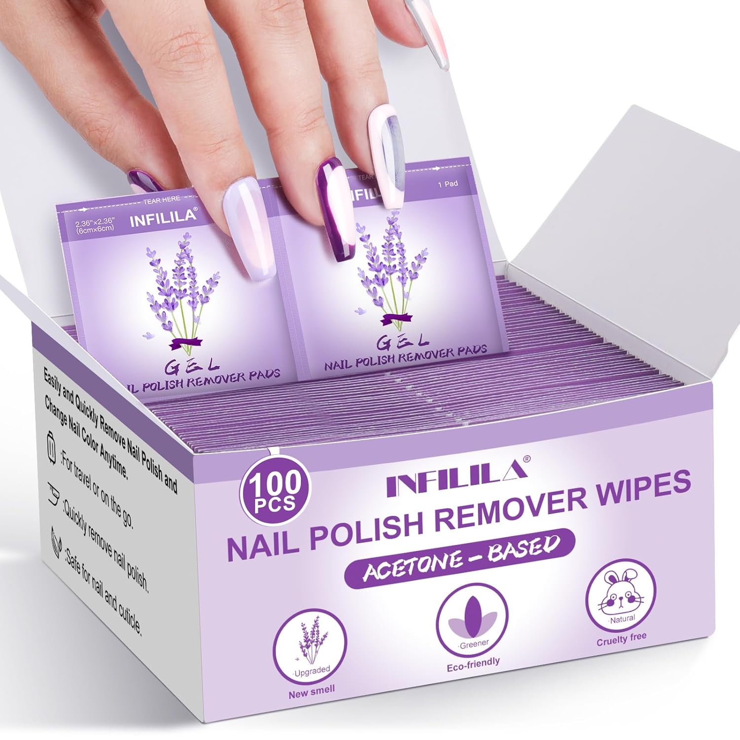 NXJ INFILILA Nail Polish Remover Pads, Nail Polish Remover Wipes Lavender Individually Wrapped Quick and Effective Removal
