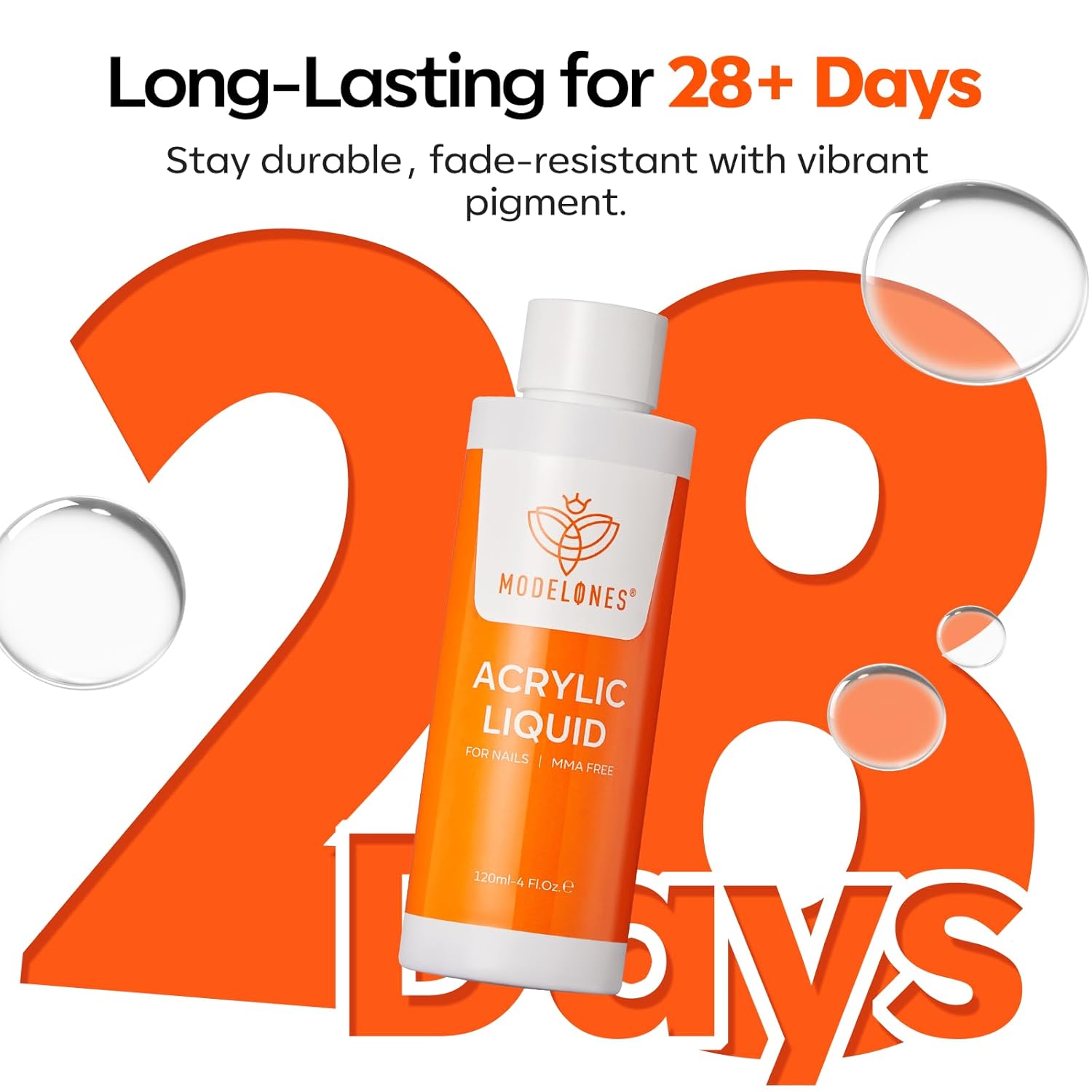 - SALON-QUALITY PERFORMANCE AT HOME: A must-have for acrylic nail lovers, this monomer delivers a flawless application every time. It’s chip-resistant, bubble-free, and self-leveling with excellent adhesion—giving you long-lasting, salon-level results right at home. For best results, pair it with MODELONES acrylic powder