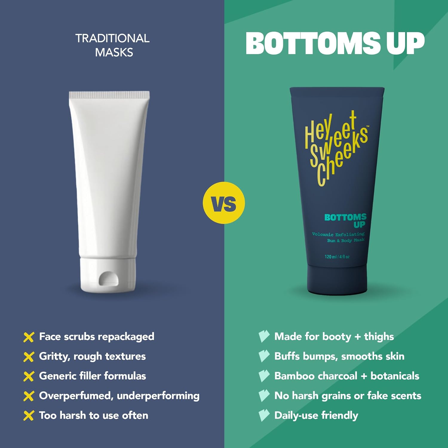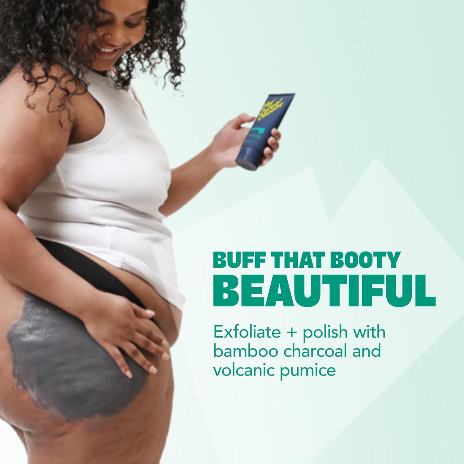 Charcoal Exfoliating Bum and Body Mask, Detoxifying Bamboo Charcoal and Volcanic Exfoliants for Radiant, Silky Smooth Skin, Bottoms Up by Hey Sweet Cheeks, 4 oz