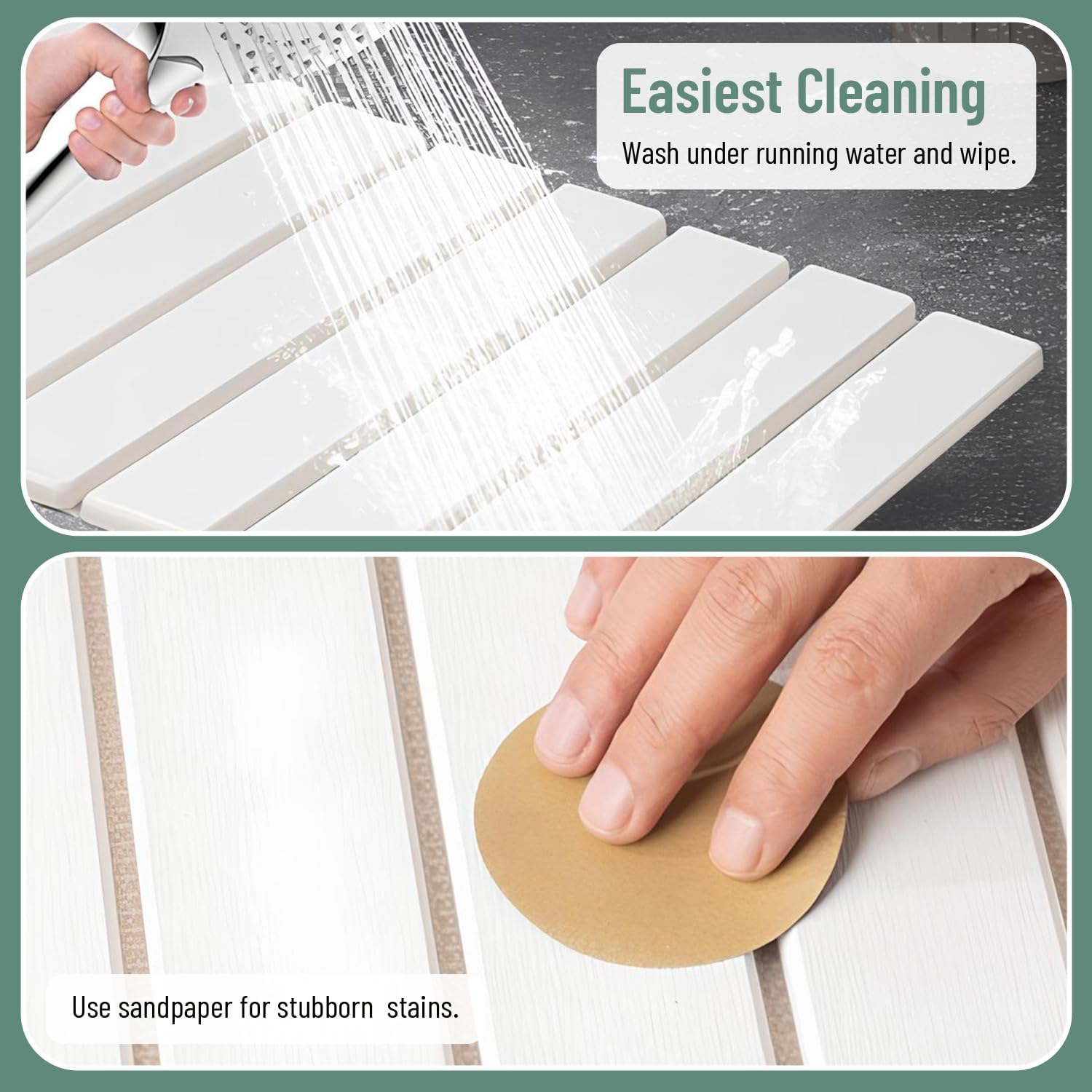 - Compact & Foldable Design – Measuring 16"(L) × 12"(W), this stone sink mat folds neatly into drawers or cabinets. Ideal for small kitchens, RVs, or apartments while still offering powerful absorbency.