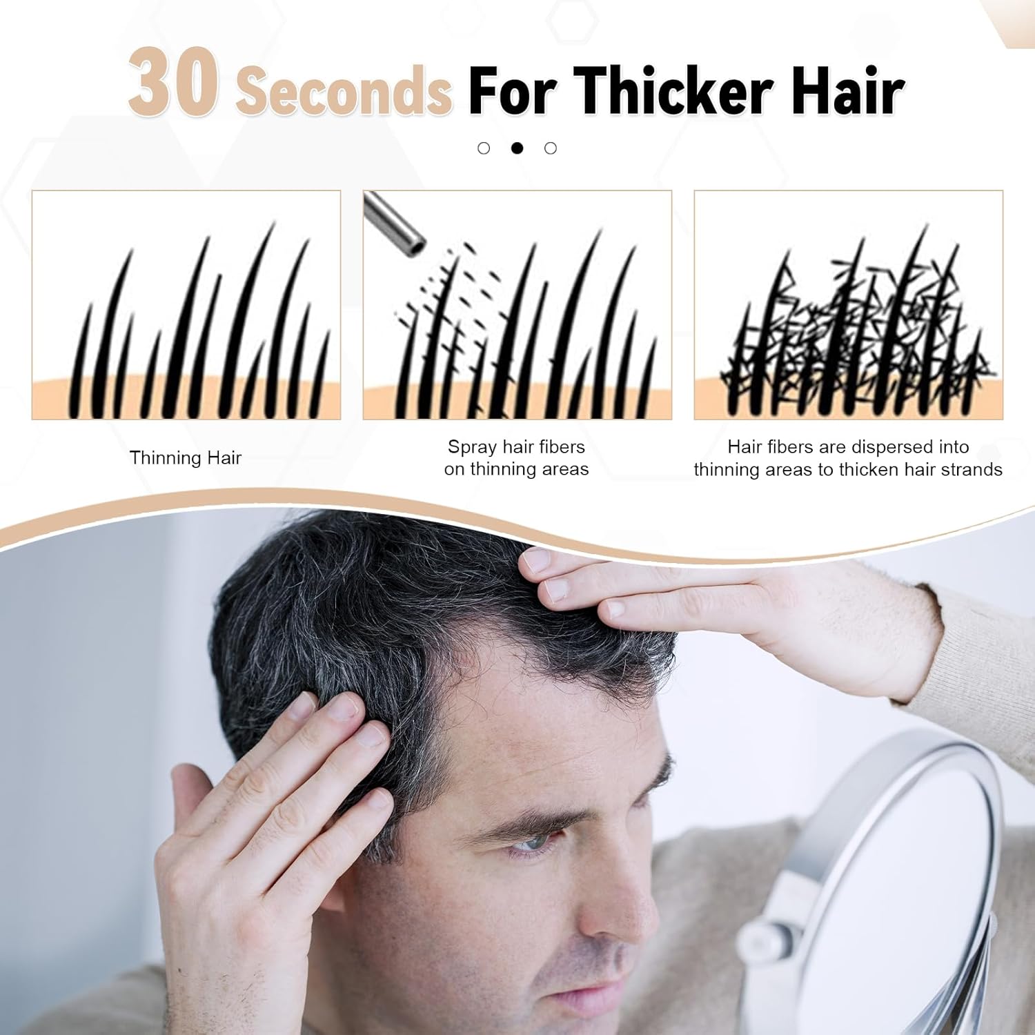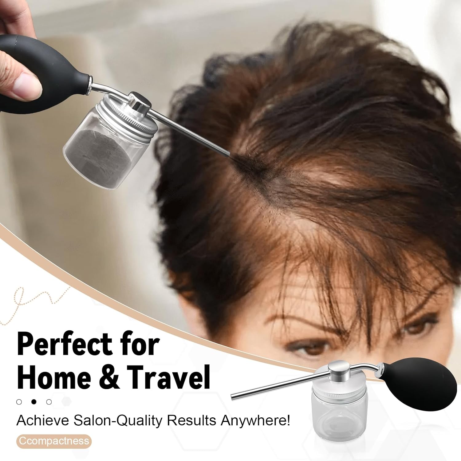 - Precision Application & Natural Hair Density Designed with a specialized nozzle for targeted powder spray, our applicator delivers controlled bursts to fill thinning areas seamlessly. Achieve a natural-looking hairline without clumping or waste, ideal for hair fibers and touch-ups