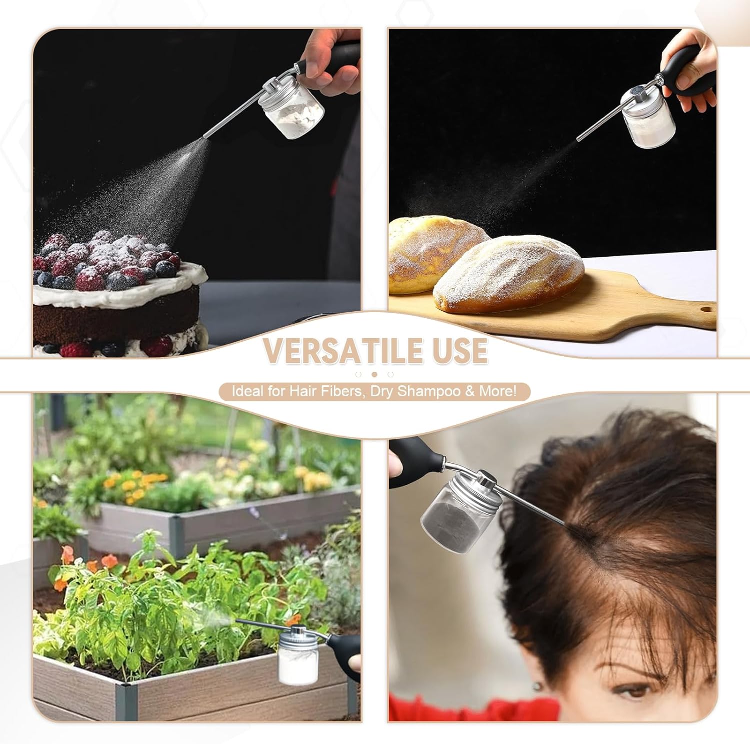 - Compatible with Most Fine Powders Works smoothly with lightweight, non-clumping powders. Not for coarse or oily textures. Ideal for cosmetic powders, dry shampoo, hair fibers, and more—always test with a small amount first