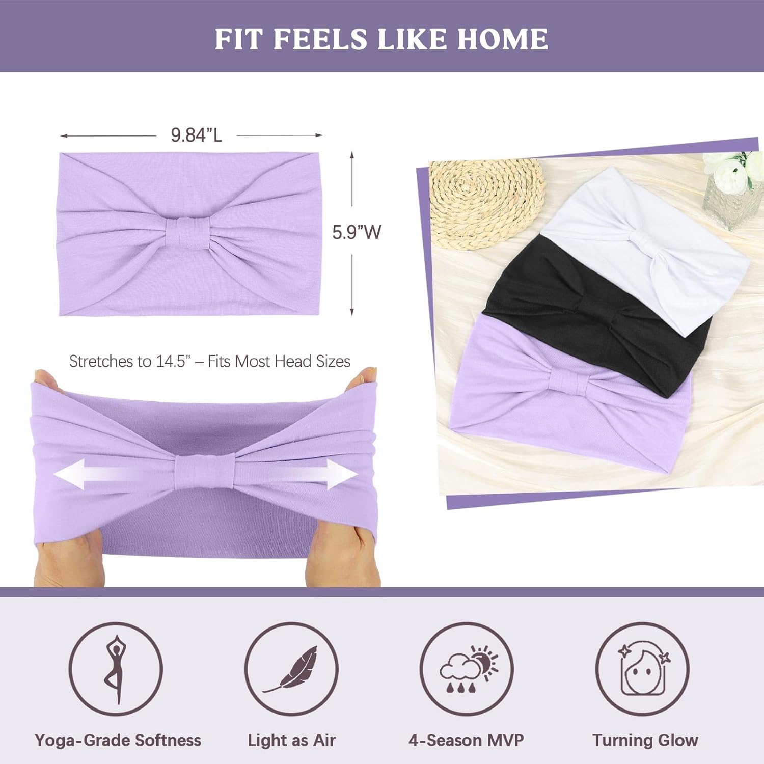 Wide Headbands for Women Knotted No Slip Head Bands Soft Turban Headband Hair Accessories Boho African Solid Color Head Wraps for Women Yoga Workout Pack of 6