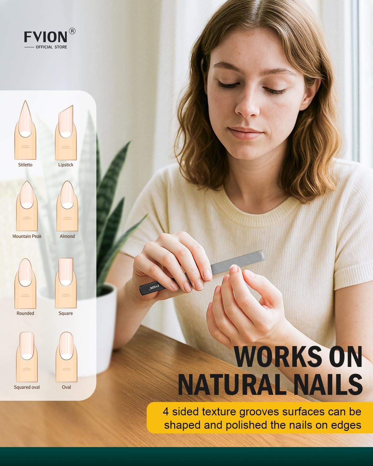 - Wide Uses - FVION finger nail files are suitable for filing fingernails, toenails, and acrylic nails, they are suitable for men, women, and the elderly, and work quickly to trim the nails with your desired shape or length.