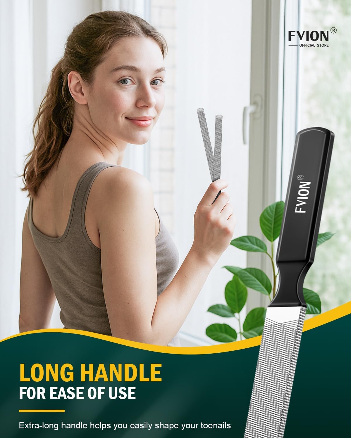 - Keep Nails Beautiful: The FVION professional nail file for men is useful for removing tri-breaks, and rough edges, it is used to repair broken or split nails and is very strong so will file thicker toenails with no problem, The comfortable grip allows for a secure hold, making it simple for seniors to polish their toenails without discomfort.