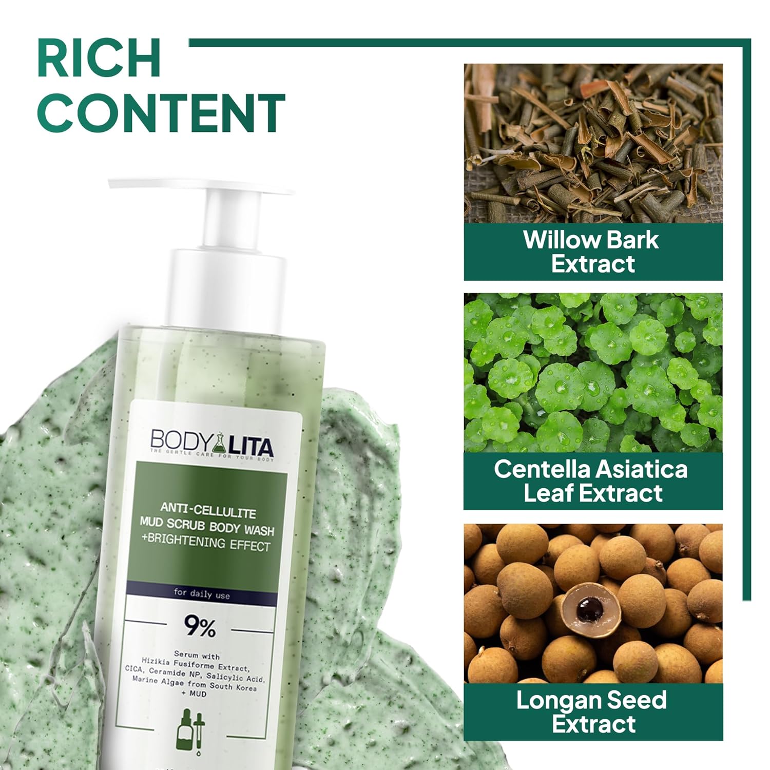 Anti Cellulite Mud Scrub Body Wash, Reduces Cellulite, Gentle Exfoliating, Improves Skin Texture, Provides a Smoother Look, 5.07 Fl Oz (6)
