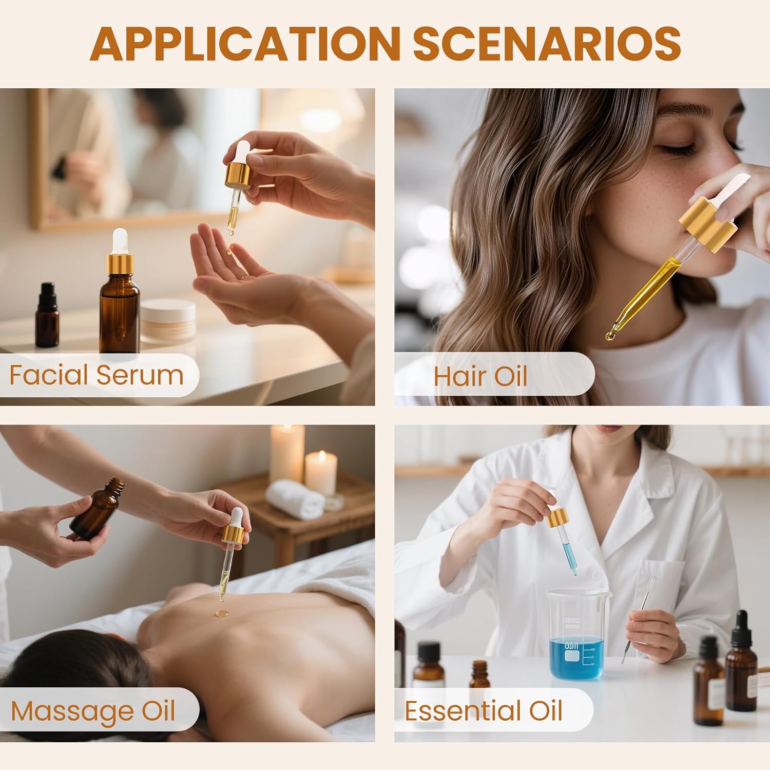 - Comprehensive Set for Versatile Use: This set includes 28 pieces of 2oz amber glass dropper bottles, label stickers for easy organization, 1 funnel, 1 3ml dropper, and 2 extra black caps — perfect for storing and dispensing essential oils, perfumes, beard oils, hair oils, and more.