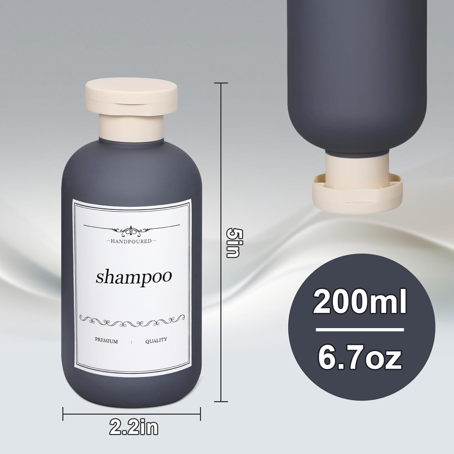 - PRACTICAL DESIGN:These Refillable Travel Shampoo Bottles with Flip Cap are designed with a wide mouth and can be easily filled. The flip-top leak-proof design ensures that you won't be at risk of leakage while you are traveling. In addition, you can attach labels to the travel dispenser bottles to differentiate the liquids in the bottles.
