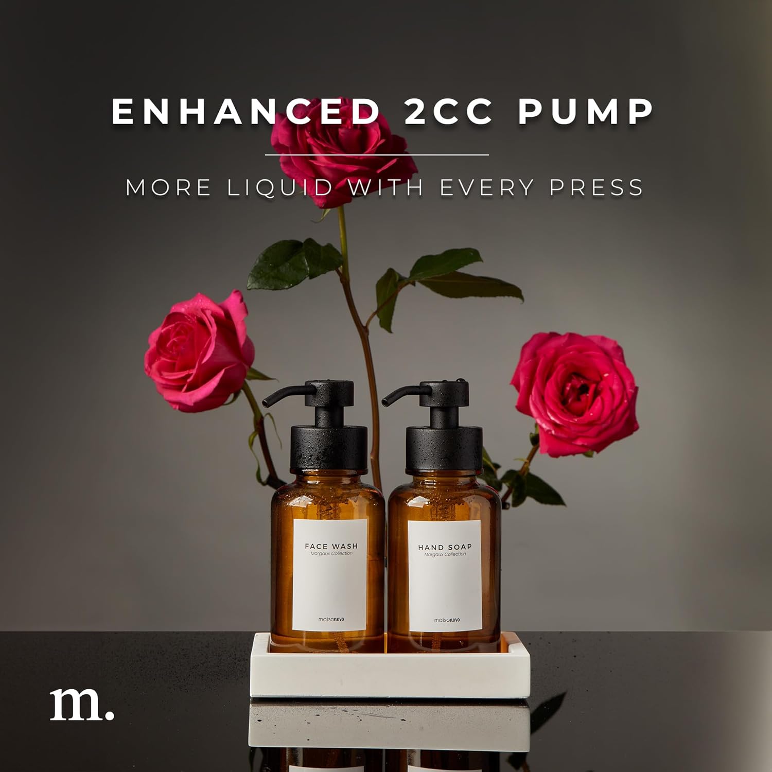 MaisoNovo Glass Foaming Soap Dispenser 14 Oz | Amber Glass Black Pumps x 2 with Tray