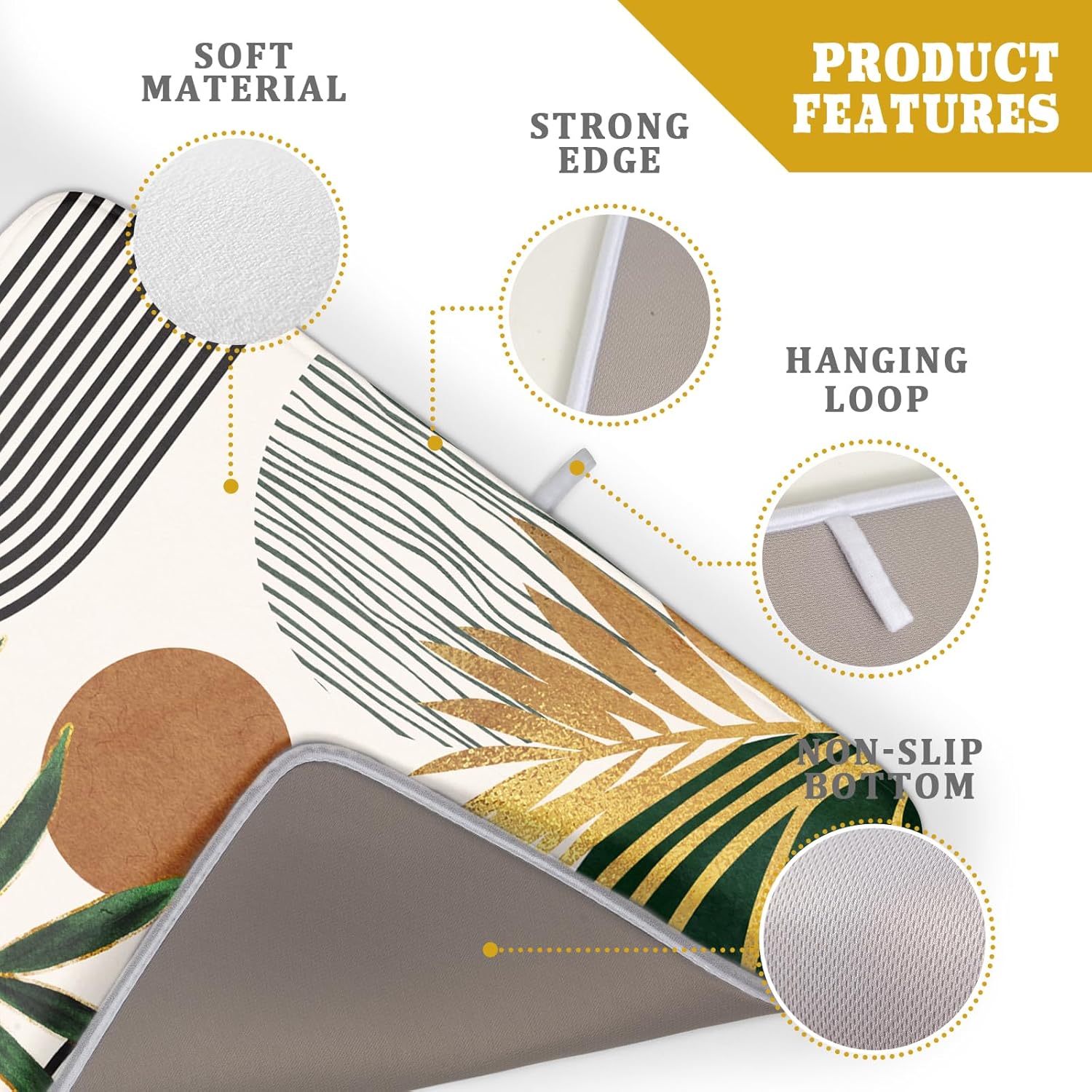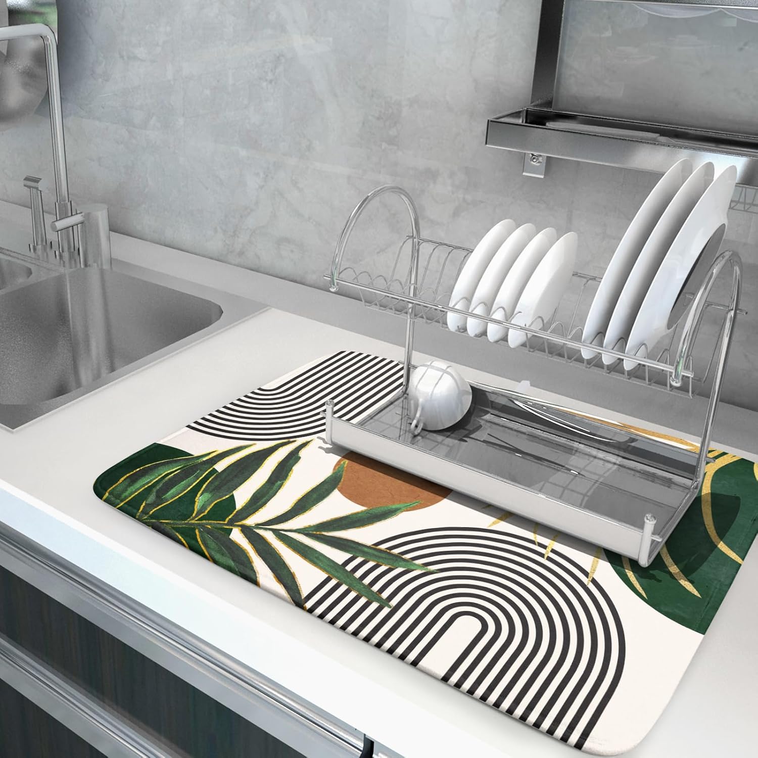 - 【Protect Tableware】Place your dishes on it or under dish racks, the abstract boho dish mat prevents bowls, glassware, and more tablewares from being scratched or worn, can be used as dish drying mat, sink mat, dishes drainer mats to keep the countertop dry and tidy.