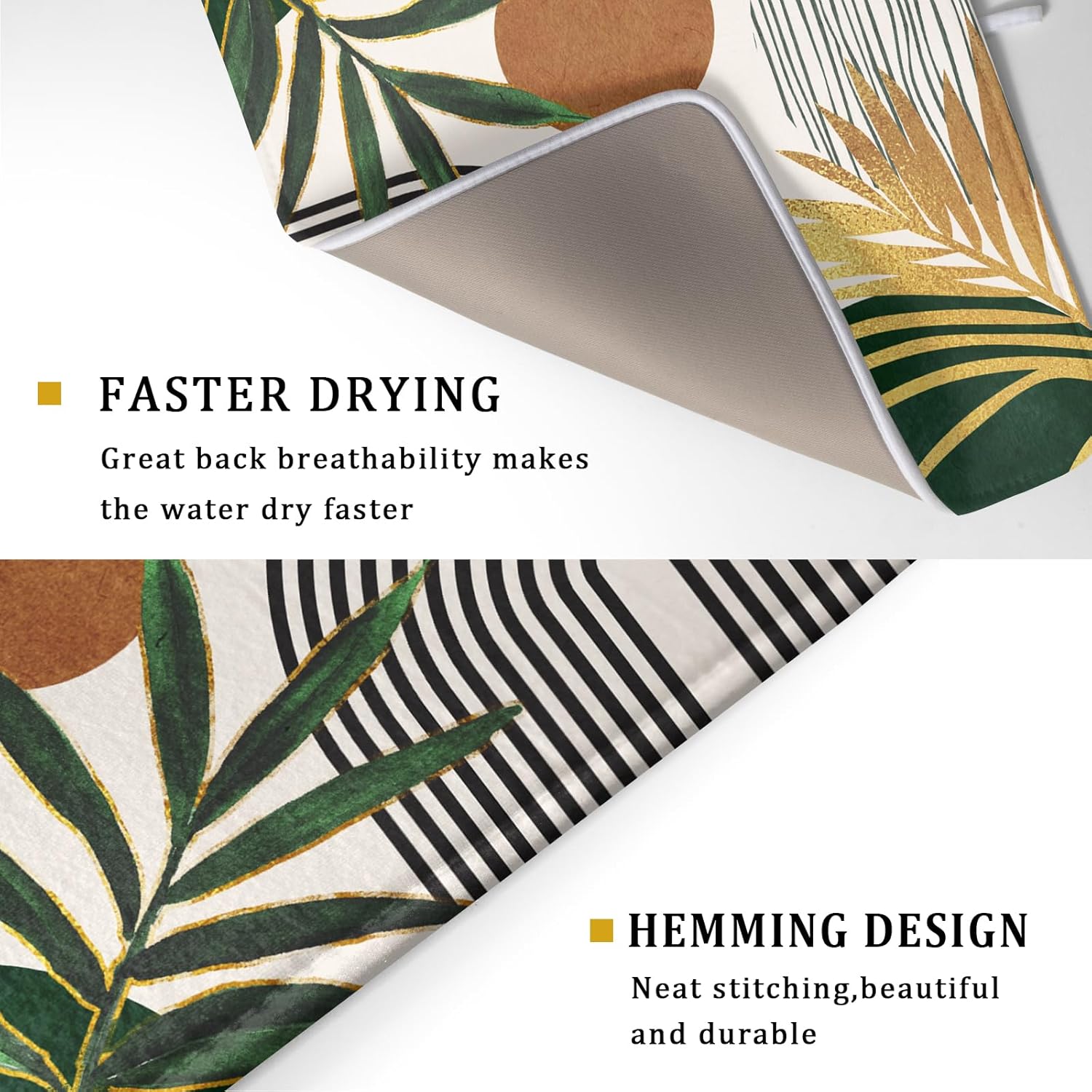 Boho Leaves Dish Drying Mat 18x24 inch Mid Century Absorbent Drainer Rack Mats Fast Dry Bottles Dish Dry Pad Protector Kitchen Accessories