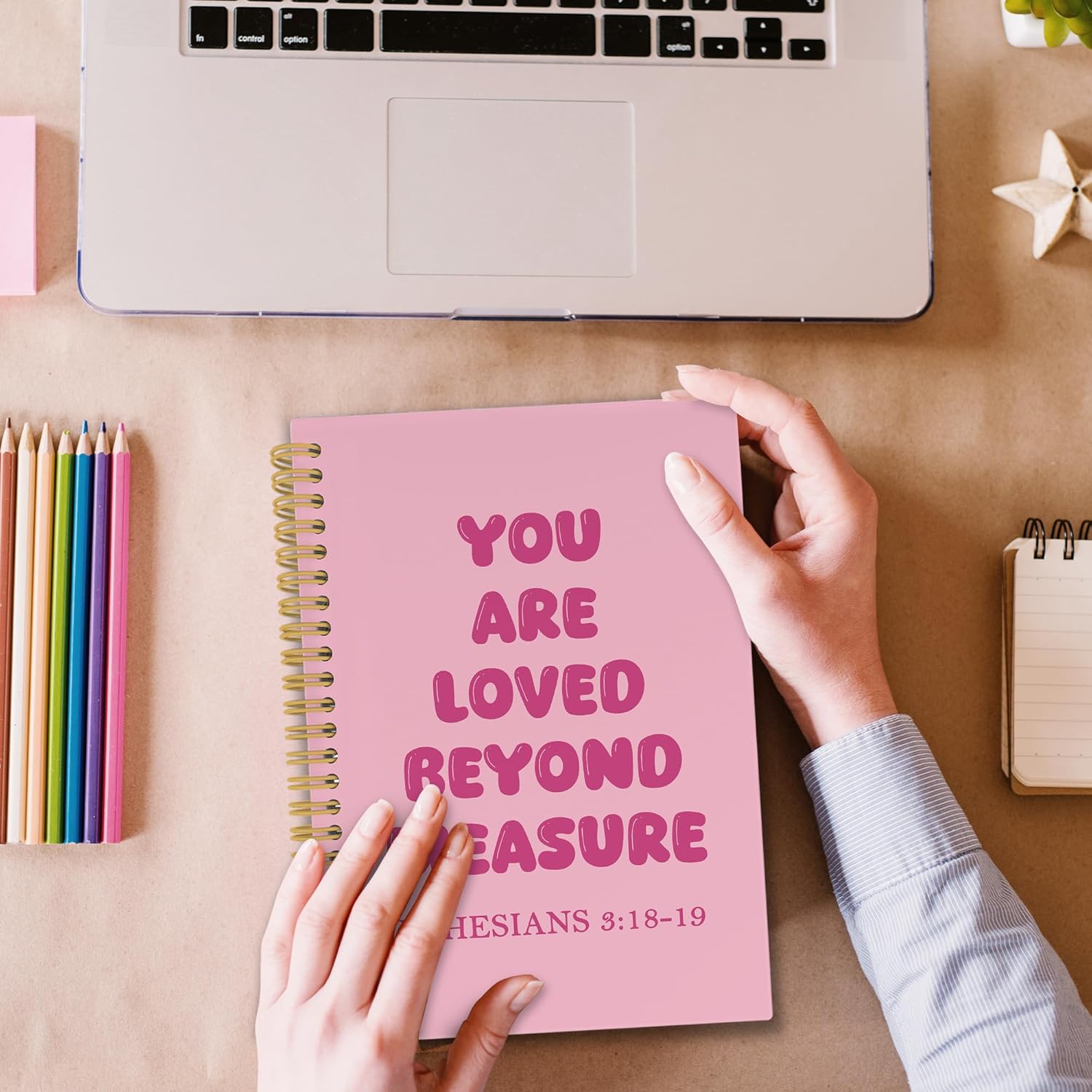 Pink Christian Spiral Notebook, Inspirational Religious Journaling Notebooks for Office School, Preppy Girly Hardcover Journals Gifts for Teen Girls Women Kids, 160 Pages 5.5 x 8.3 Inch