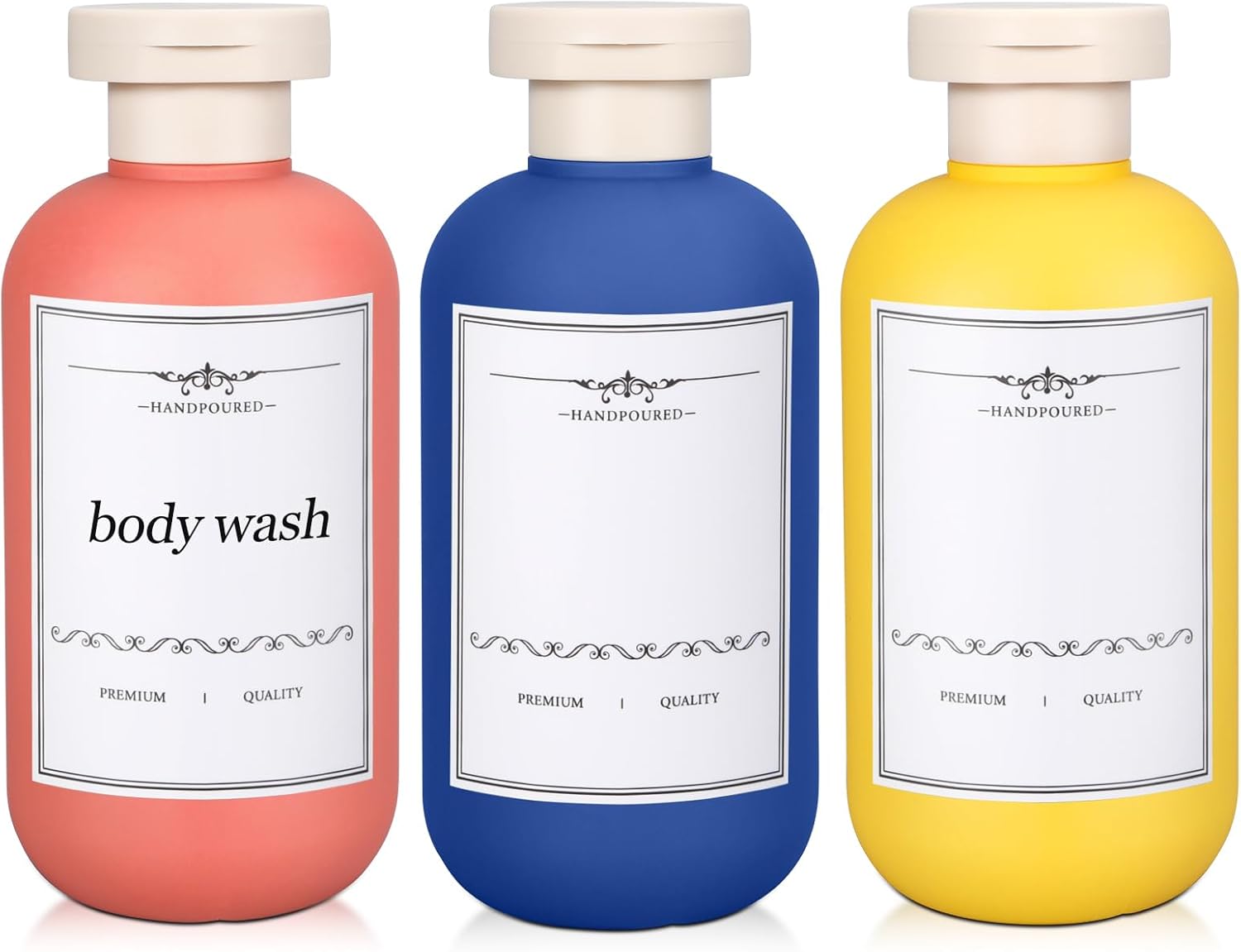 3 PACK Travel Shampoo Bottle, Empty Plastic Squeeze Bottles 6.8oz with Flip Cap, Lotion Container for Toiletries Travel Size Shampoo and Conditioner