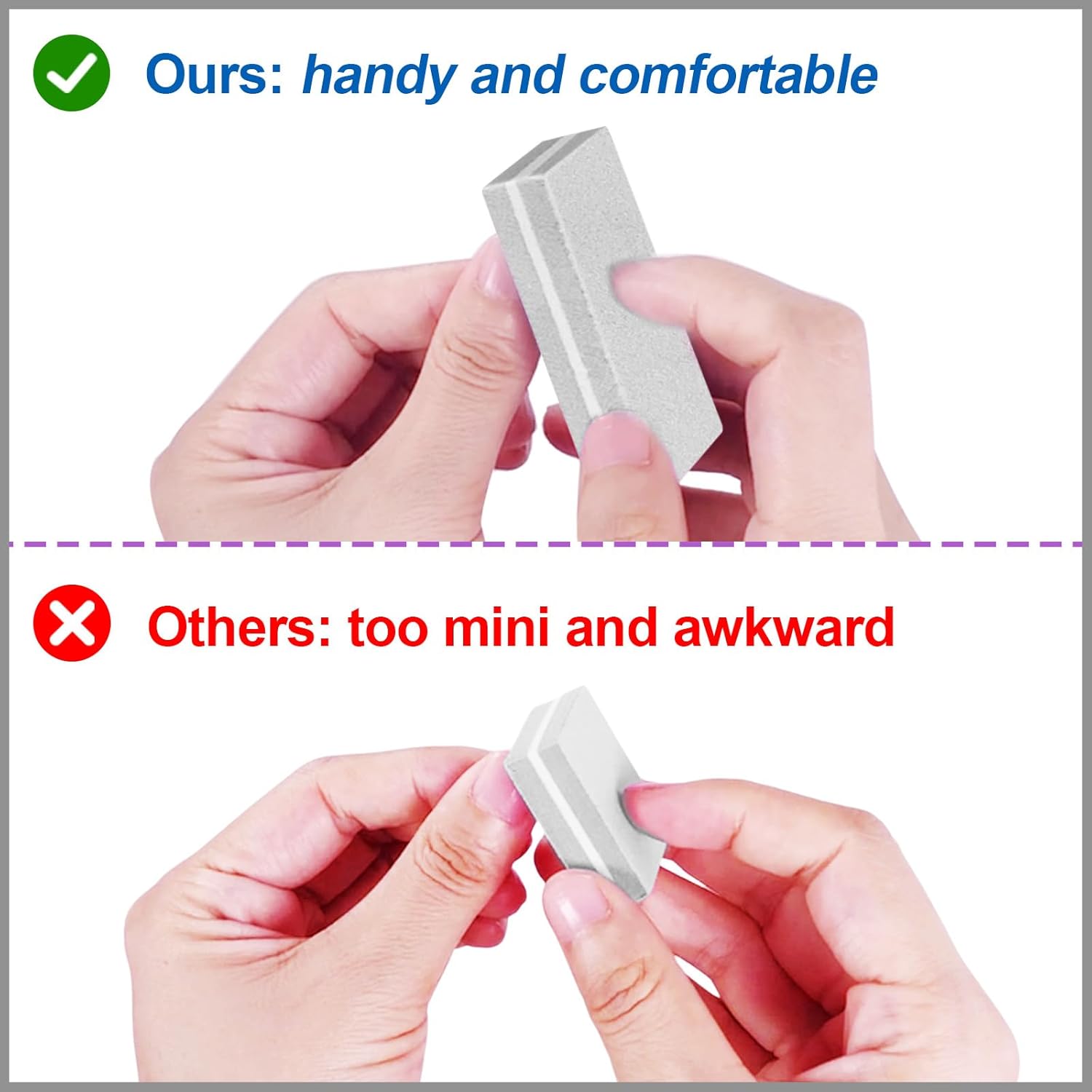 - PORTABLE AND CONVENIENT: With a compact size of 2.36β x 1.22β, our small nail buffers are easier to carry in your purse or bag if compared with other mini buffers, and so they are perfect for on-the-go use; whether you need a quick touch-up or a full nail buffing session, our nail buffer blocks are the perfect tool to do the job; and