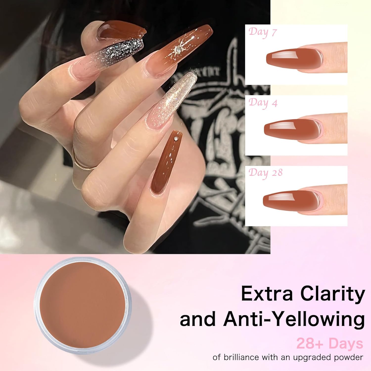 - 【Thin and brittle nail savior crystal powder】An innovative formula designed specifically for fragile nails, with three colors of bruschetta, tuscany, muted clay available. The special reinforcement ingredients can effectively protect thin and brittle nails, prevent breakage and delamination, and make the manicure process more secure. One box solves the nail art troubles of those with fragile nails, and it has both beauty and protection!