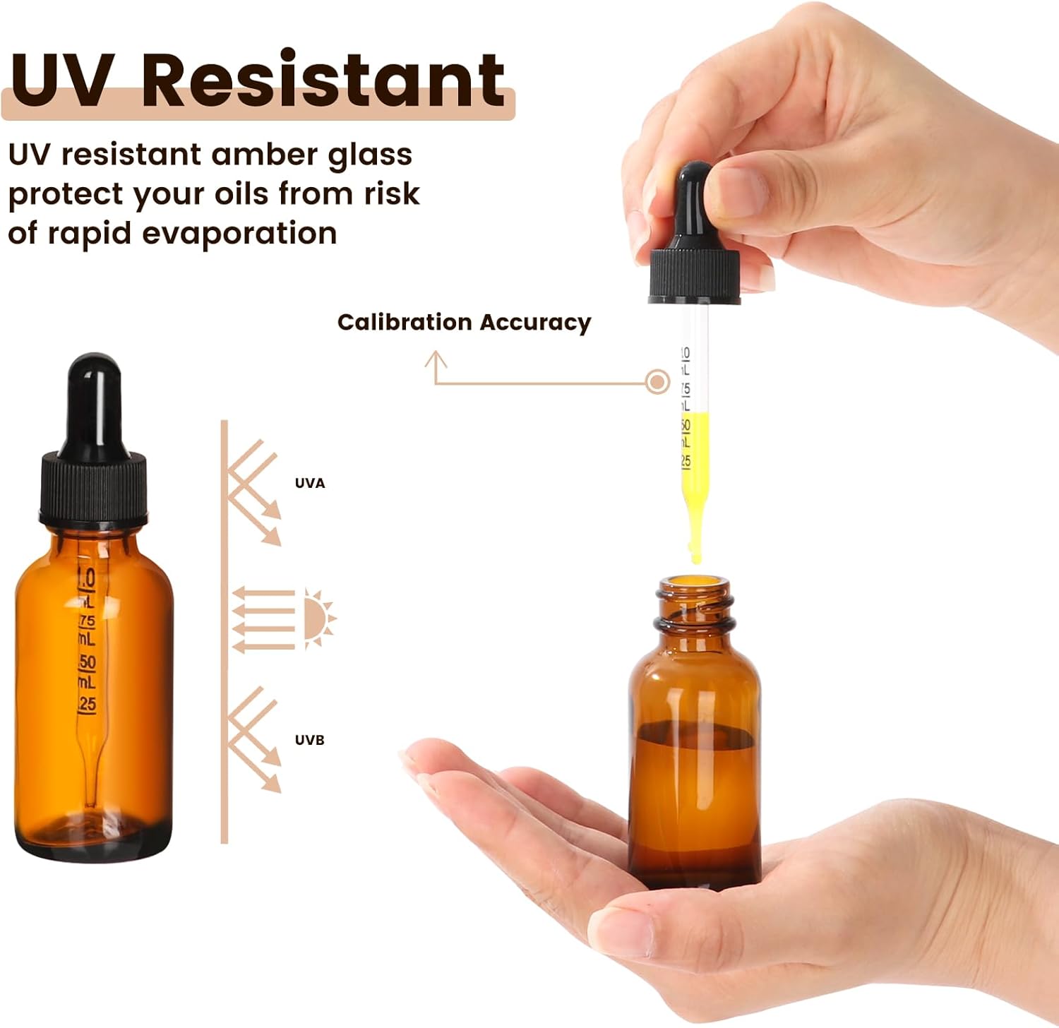 - STICKERS&FUNNEL INCLUDED: Except for 48pcs amber dropper bottle 1 oz and 3pcs plastic graduated pipettes, there are 48pcs blank stickers and 1 plastic funnel included in the package for you to customize your own products