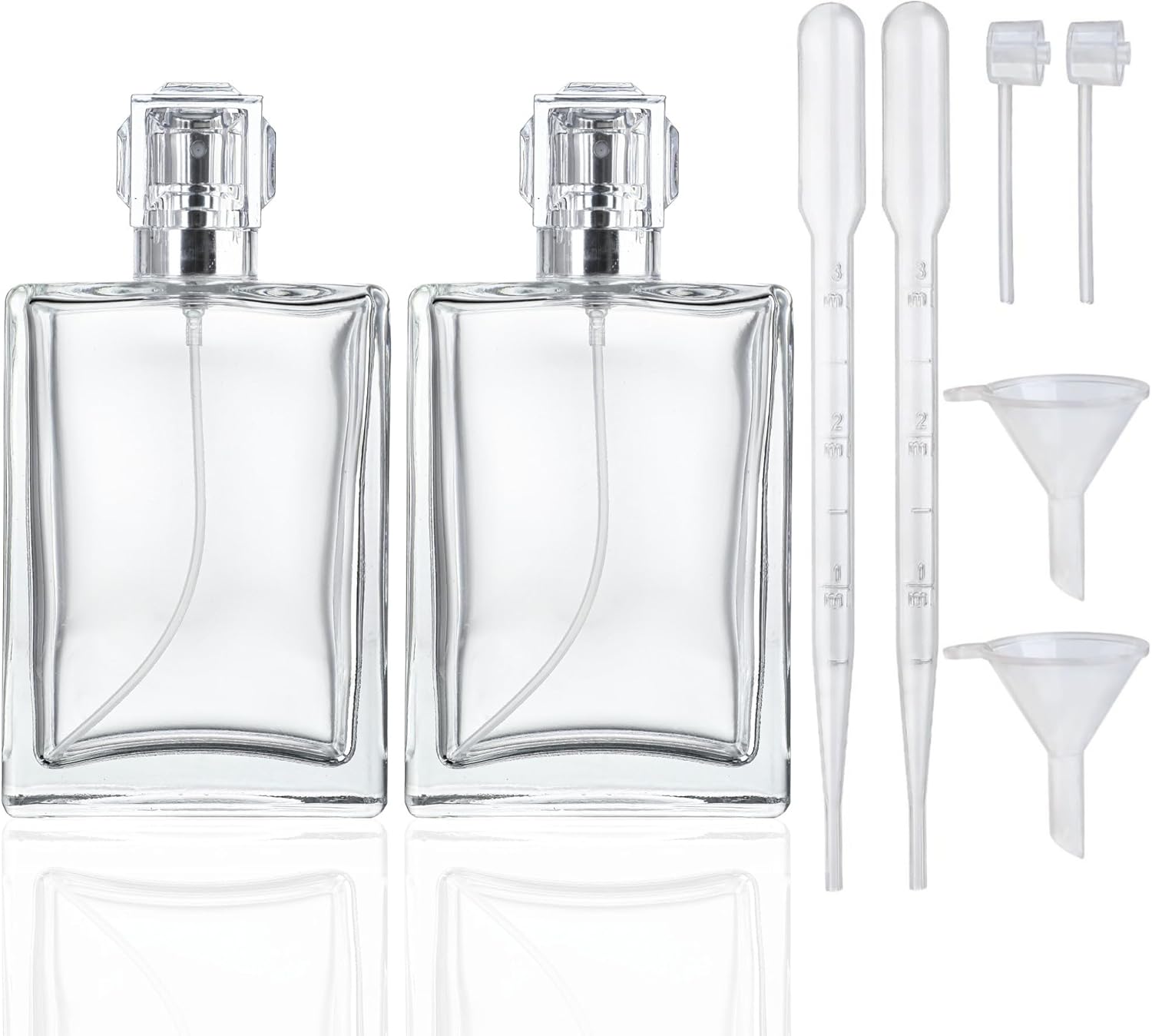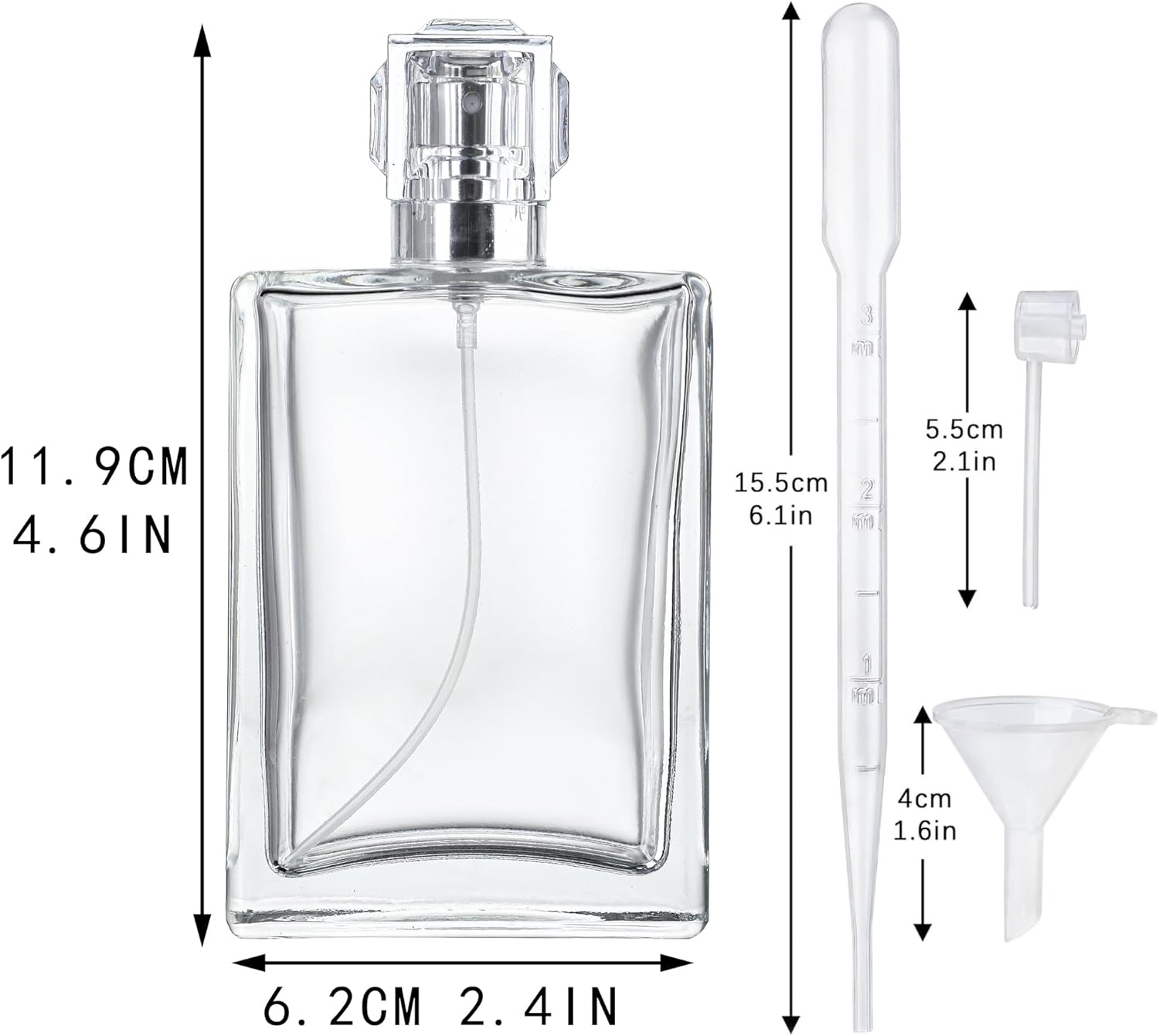 - 2 Pack Practical Set:Each 3.38 fl. oz (100ml) glass perfume bottle offers ample space to store fragrances, ideal for daily use, travel, or DIY scent creation.