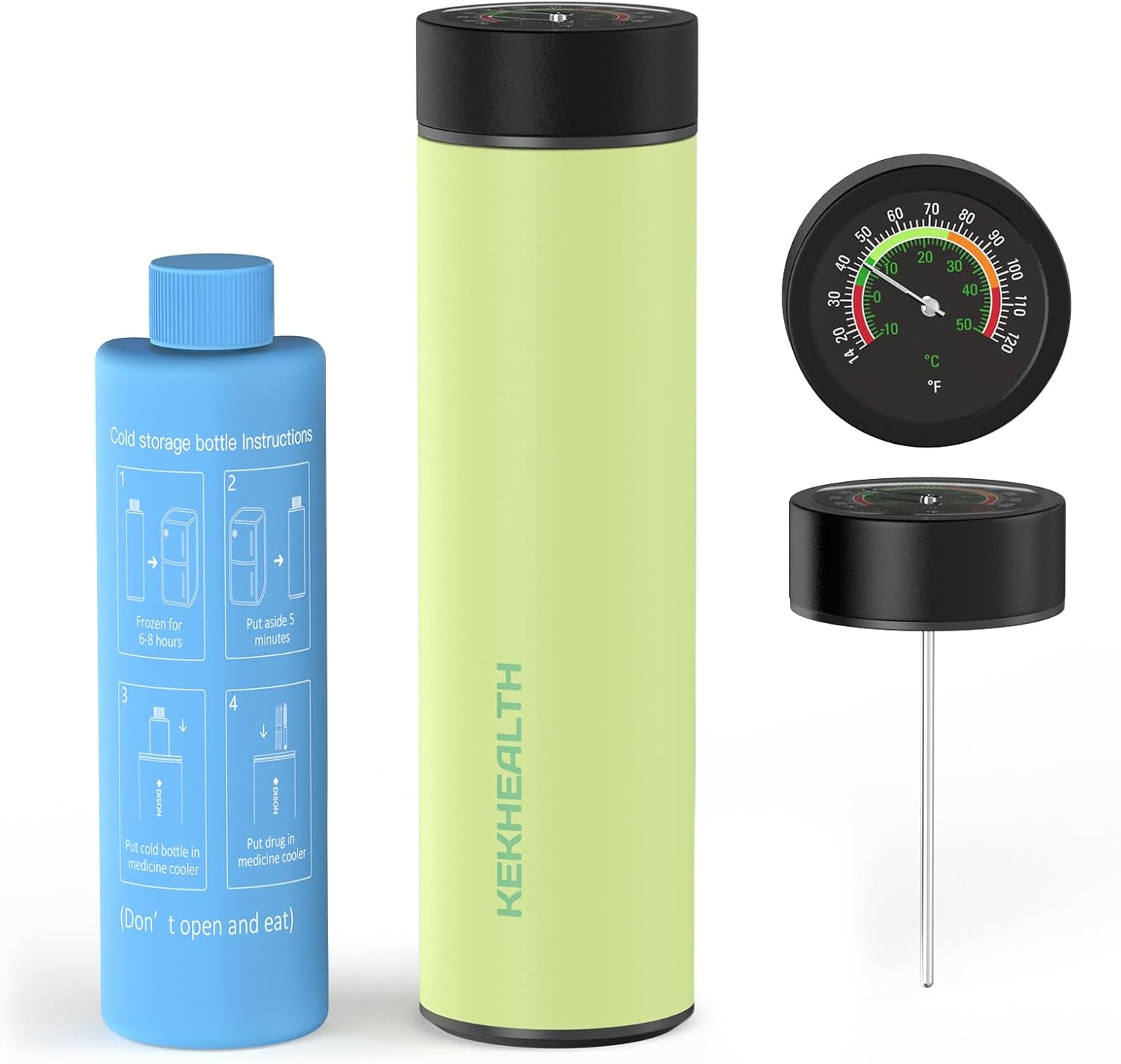 • 60-Hour Medical-Grade Protection: This insulin cooler uses 304 stainless steel and vacuum insulation to maintain critical 36-79°F temperatures for diabetes medications. The combination of a blue gel bottle (36-79°F/48H) and a white emergency bottle (36-79°F/12H) keeps medications at a safe temperature for up to 60 hours
