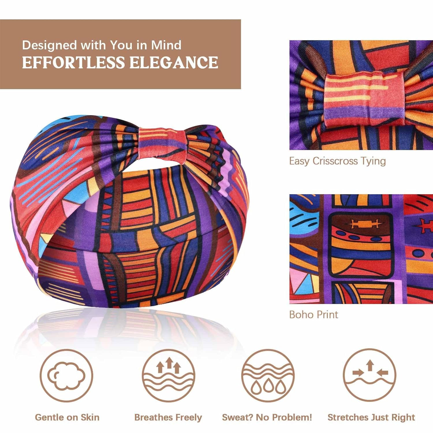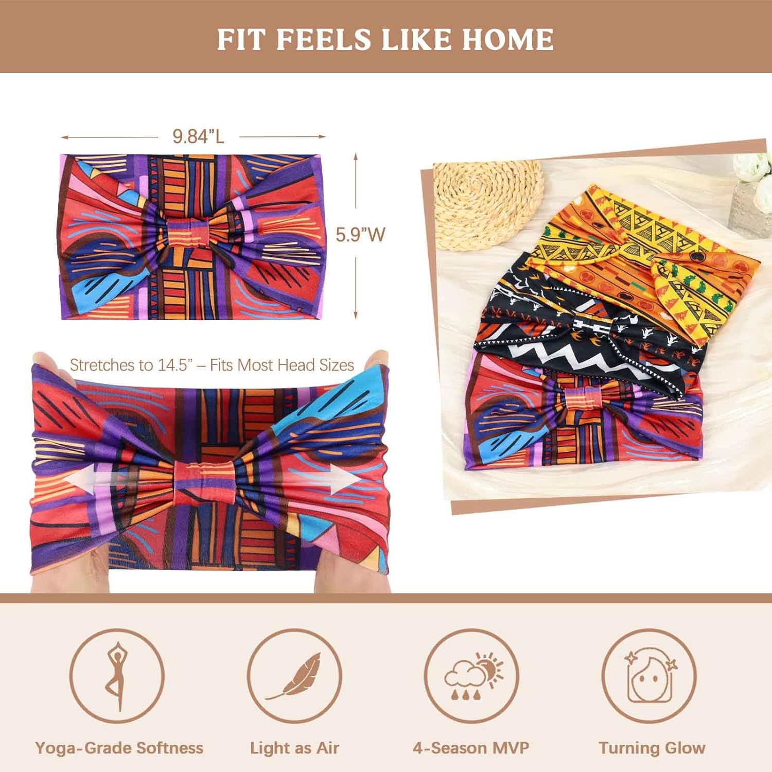 Wide Headbands for Women Knotted No Slip Head Bands Soft Turban Headband Hair Accessories Boho African Solid Color Head Wraps for Women Yoga Workout Pack of 6